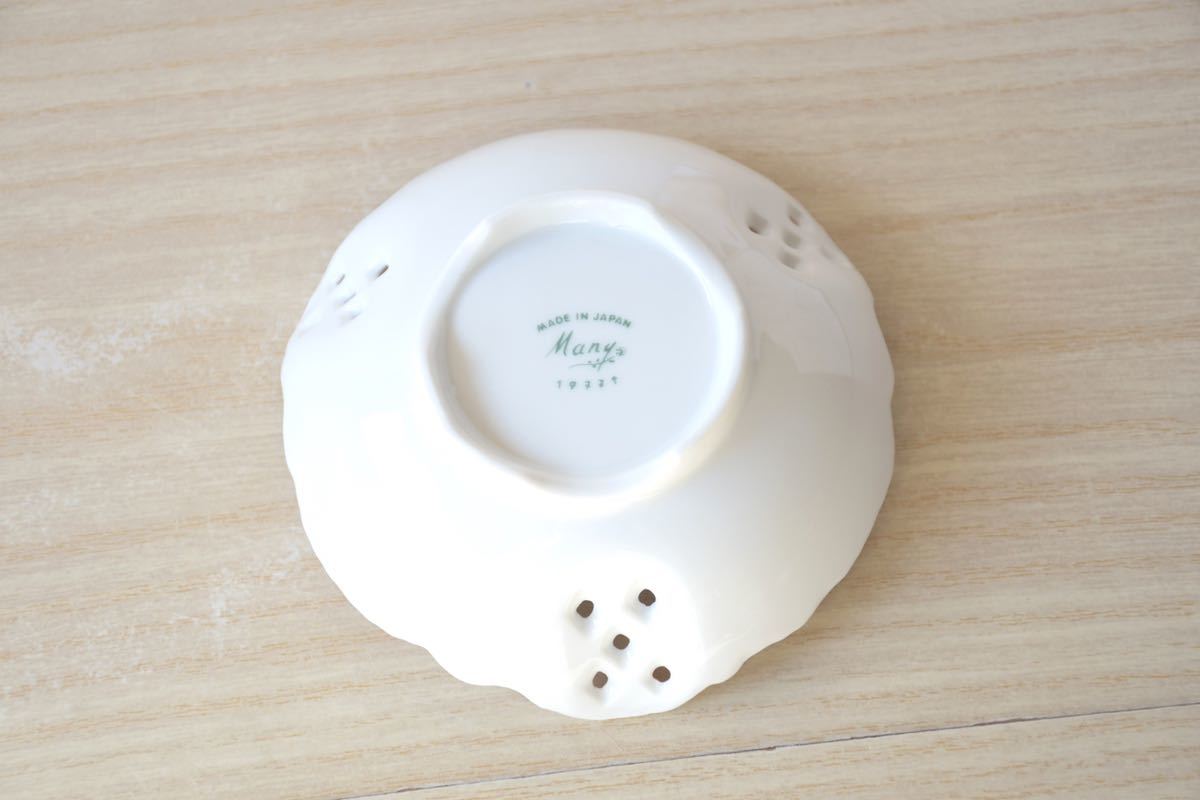 フリルの優雅な型と透かし模様がとてもエレガントなボウルです。深さがあるので、フルーツやデサート、サラダなど色々お使いいただけます。