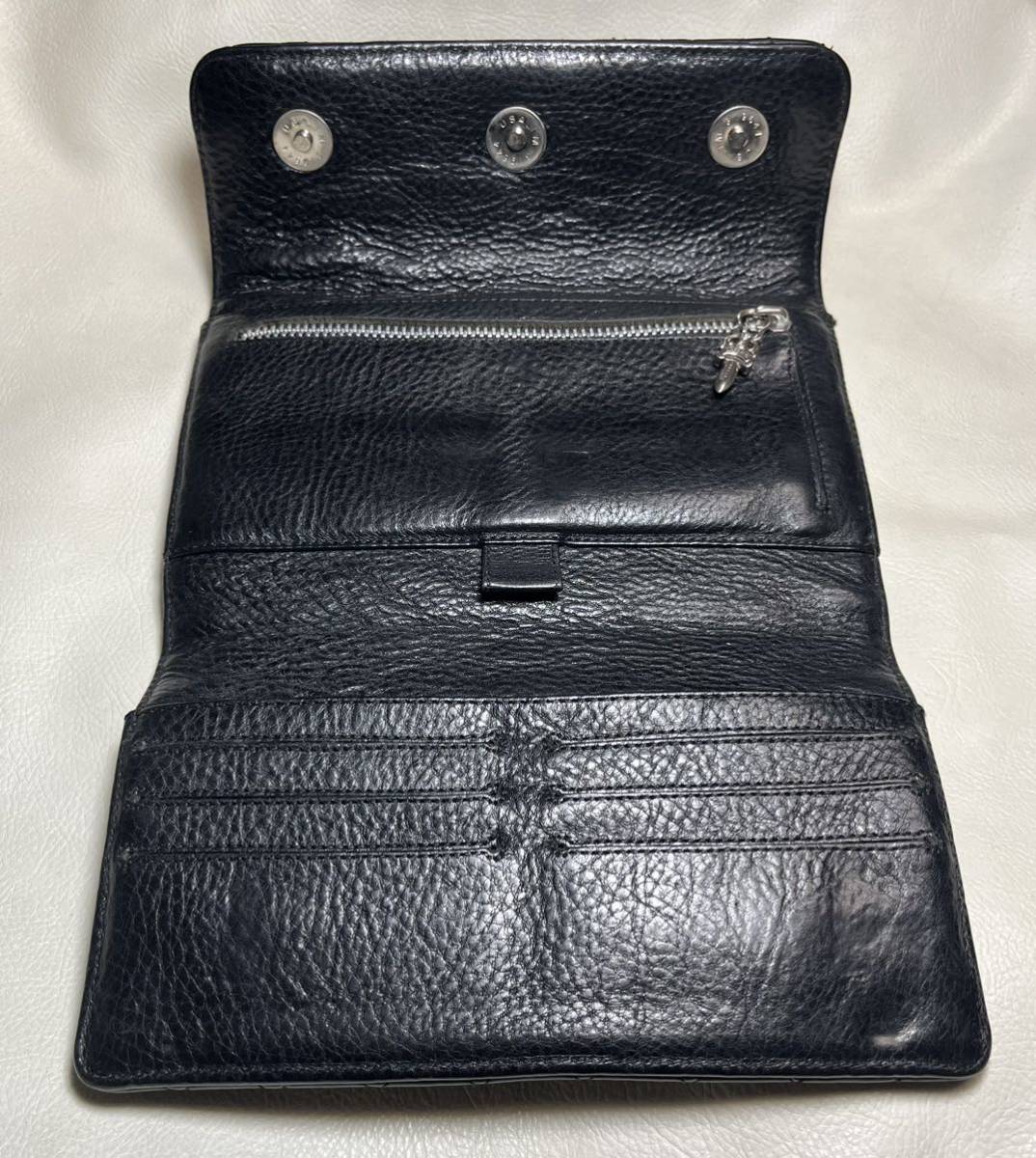 留め具にはクロムハーツ には珍しいマグネットを使用しておりますので、ボタン仕様のウオレットに比べて壊れ難く、修理の心配なく使用でき、使い易さも評判です。