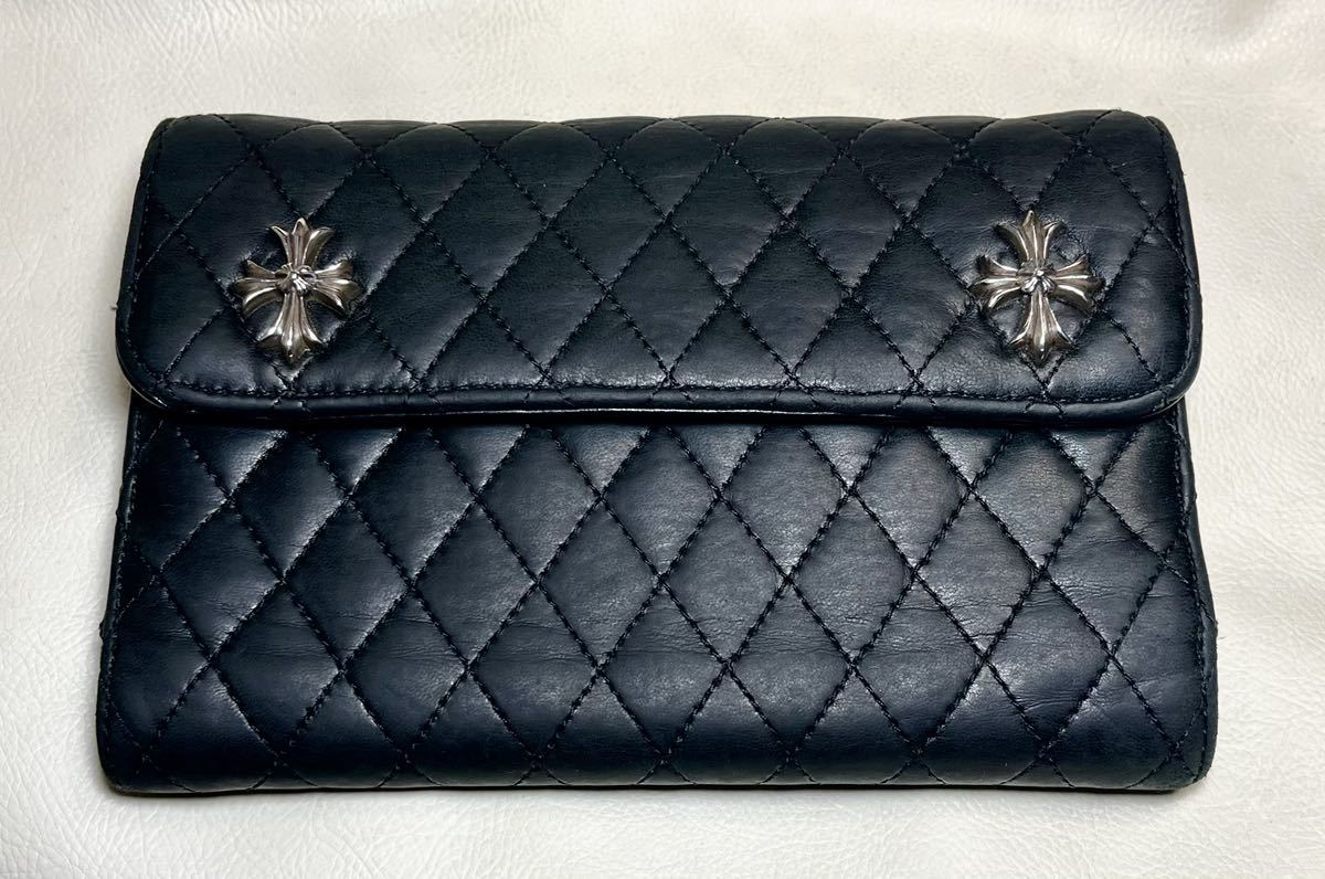 キルティングレザーにCHダブルプラスのモチーフが一目でクロムハーツ を主張するウオレット。
