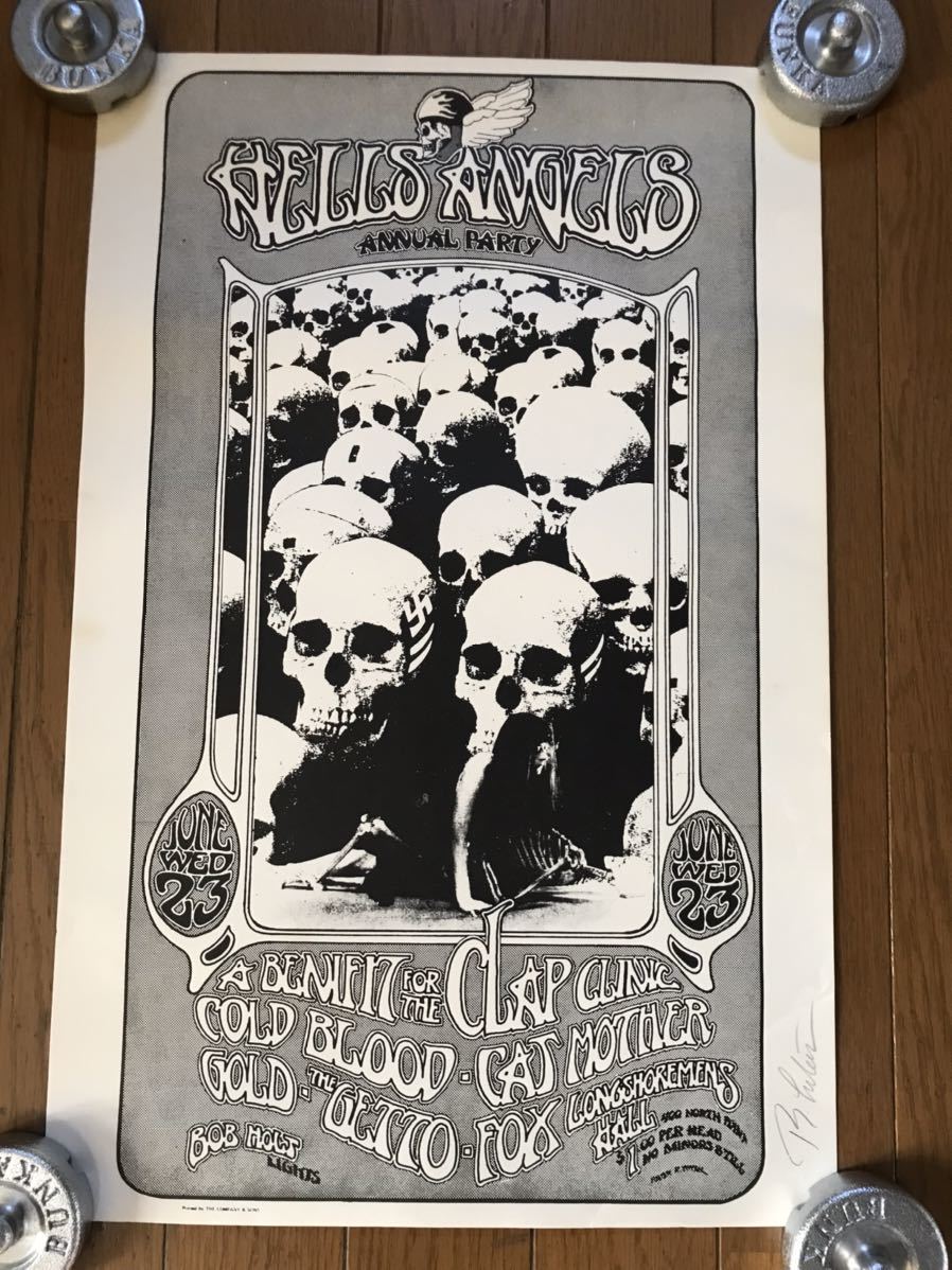 1971年6月23日(水)にアメリカ・サンフランシスコのLongshorman Hallで行われたヘルズエンジェルスのパーティー「A Benifit For The Clap Clinic(性病クリニックへの慈善事業)」フライヤー・ポスターです。