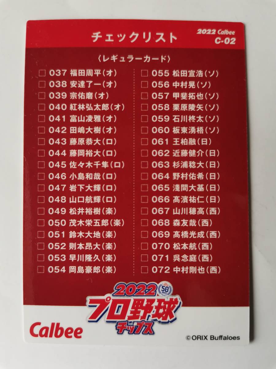 ▼カルビー 2022年 プロ野球カード プロ野球チップス パ・リーグ優勝 オリックス 第1弾 C-02チェックリスト