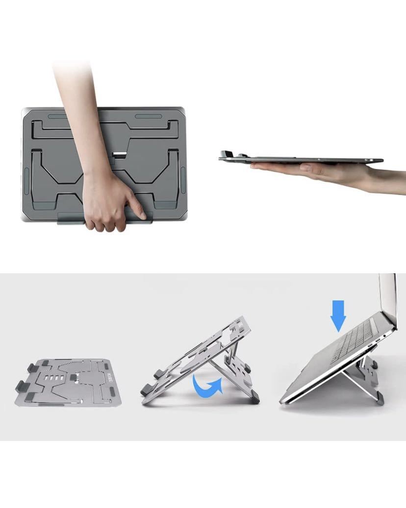 ★【精巧構造・適用範囲が広い】アルミニウム合金の材質から全体構造まで、細部まで丹念に作られたPCサポートです。どんな場所にも絹のような滑らかな感触が感じられます,表面は丹念に研磨処理され。MacBookなどと完璧にマッチした質感を持っています。Macbook/ipad/Notebookなど11-17インチのノートパソコンやタブレットパソコンに適用します。