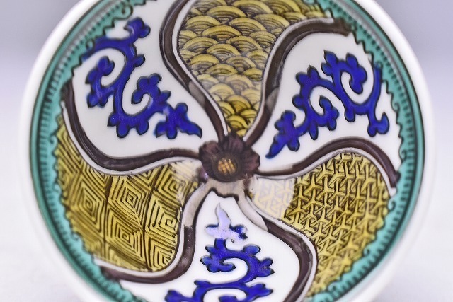 古九谷 を 彷彿とさせる 丁寧で 見事な 絵付の 逸品 です。