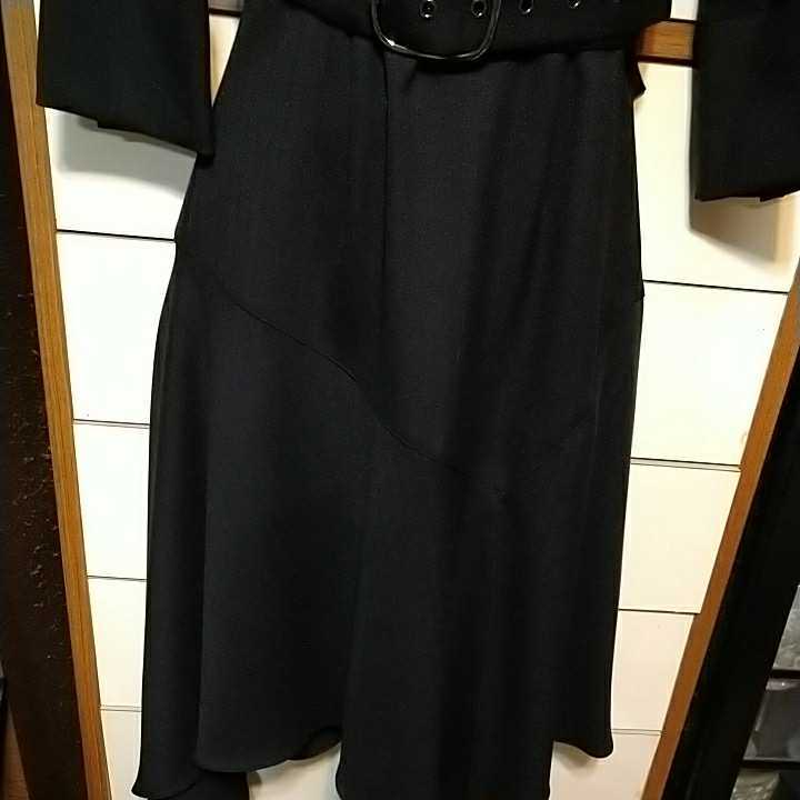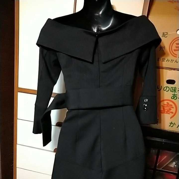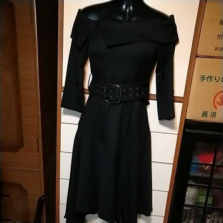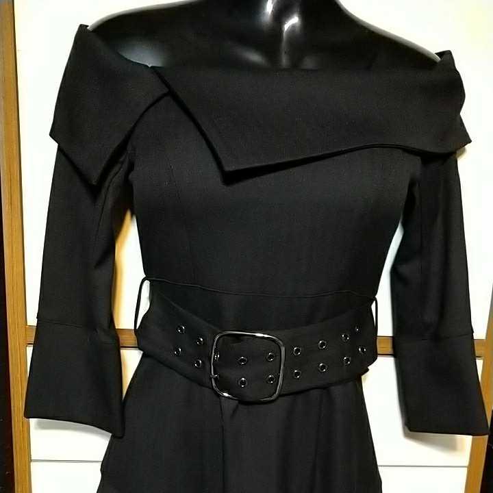 アンディ オフショルダー 黒七分袖ワンピ 未使用 Sサイズ スカートは前スリットがあります。