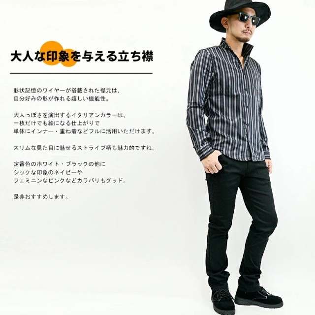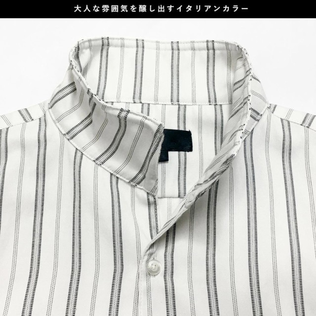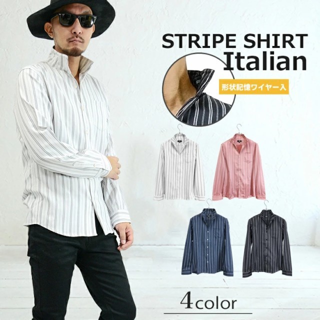 スリムな印象をみせるストライプ柄と、大人なイタリアンカラー。