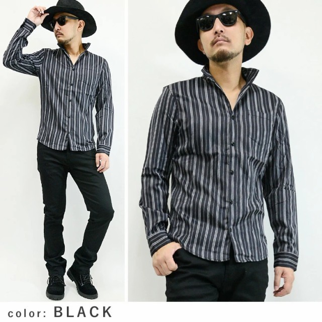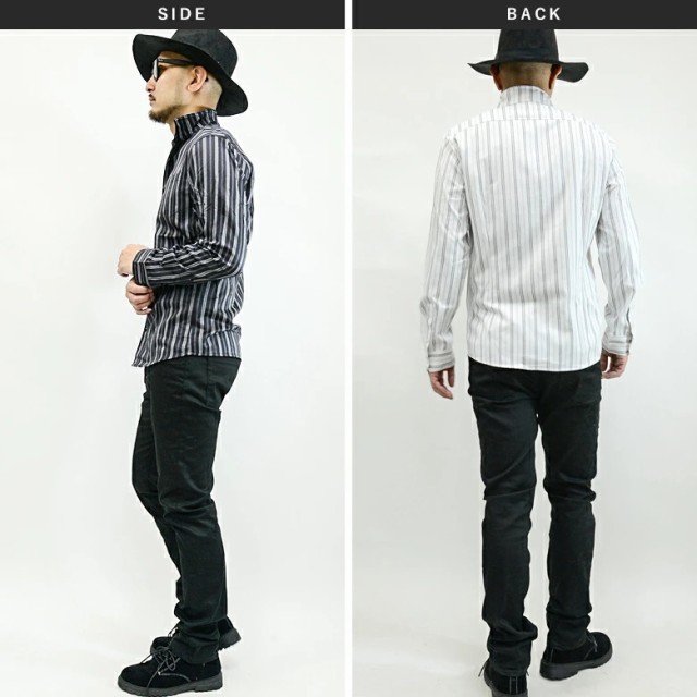 長袖/サテン生地/ストライプ柄/胸ポケット/1つポケット/ドレスシャツにも最適/