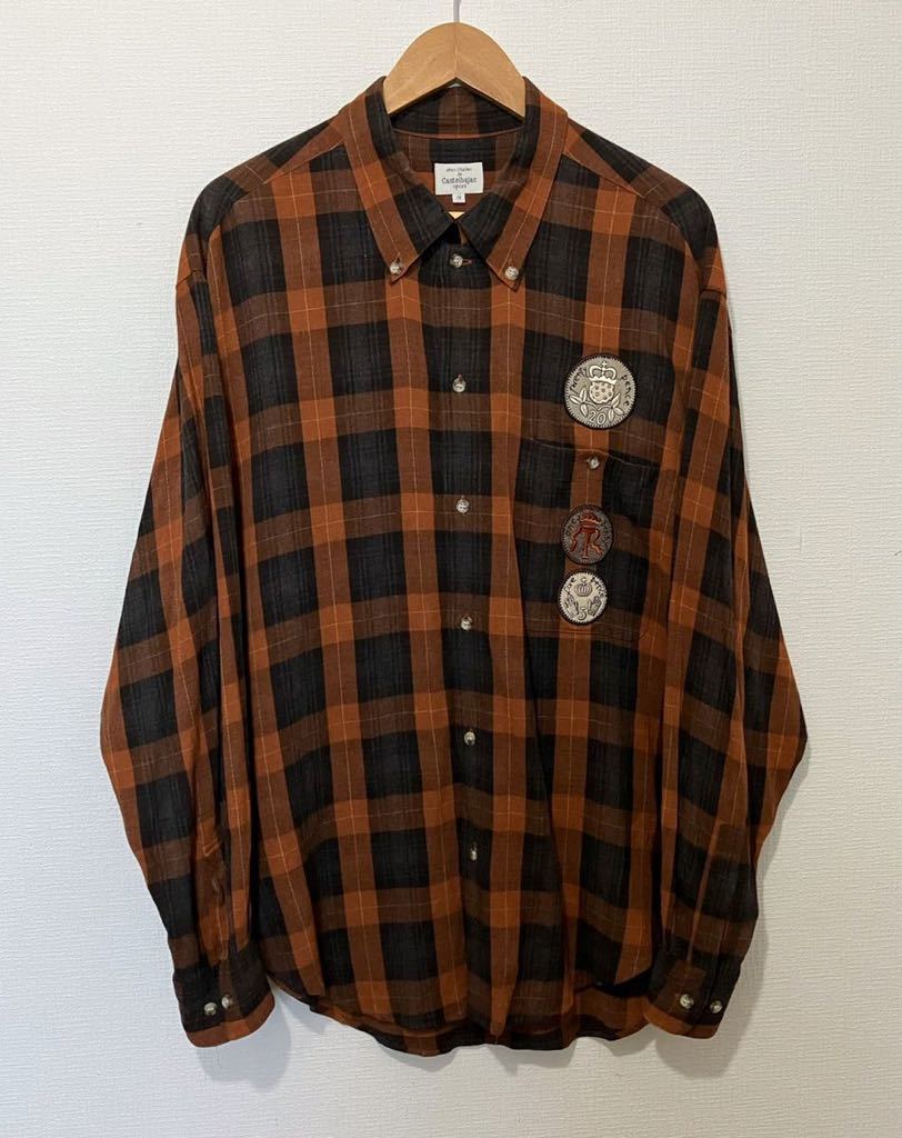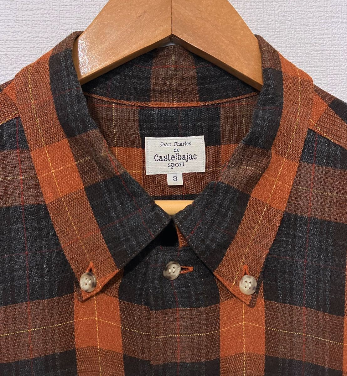 CASTELBAJAC カステルバジャック チェック柄 レーヨン長袖シャツ ボタンダウン