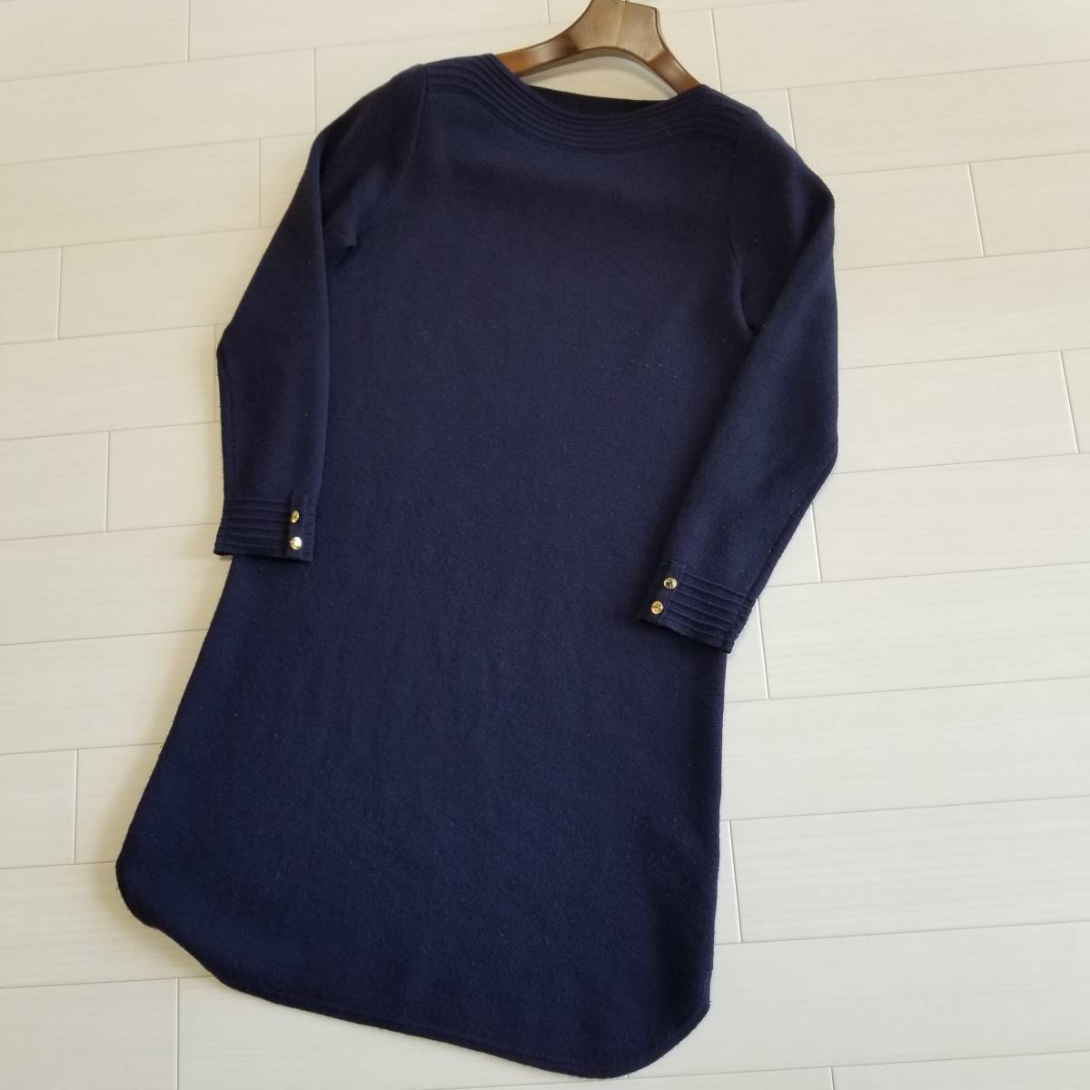 Demi-Luxe BEAMS デミルクス ビームス ワンピース 無地 ボタン ラウンドネック ロング丈 長袖 レディース ネイビー aa150