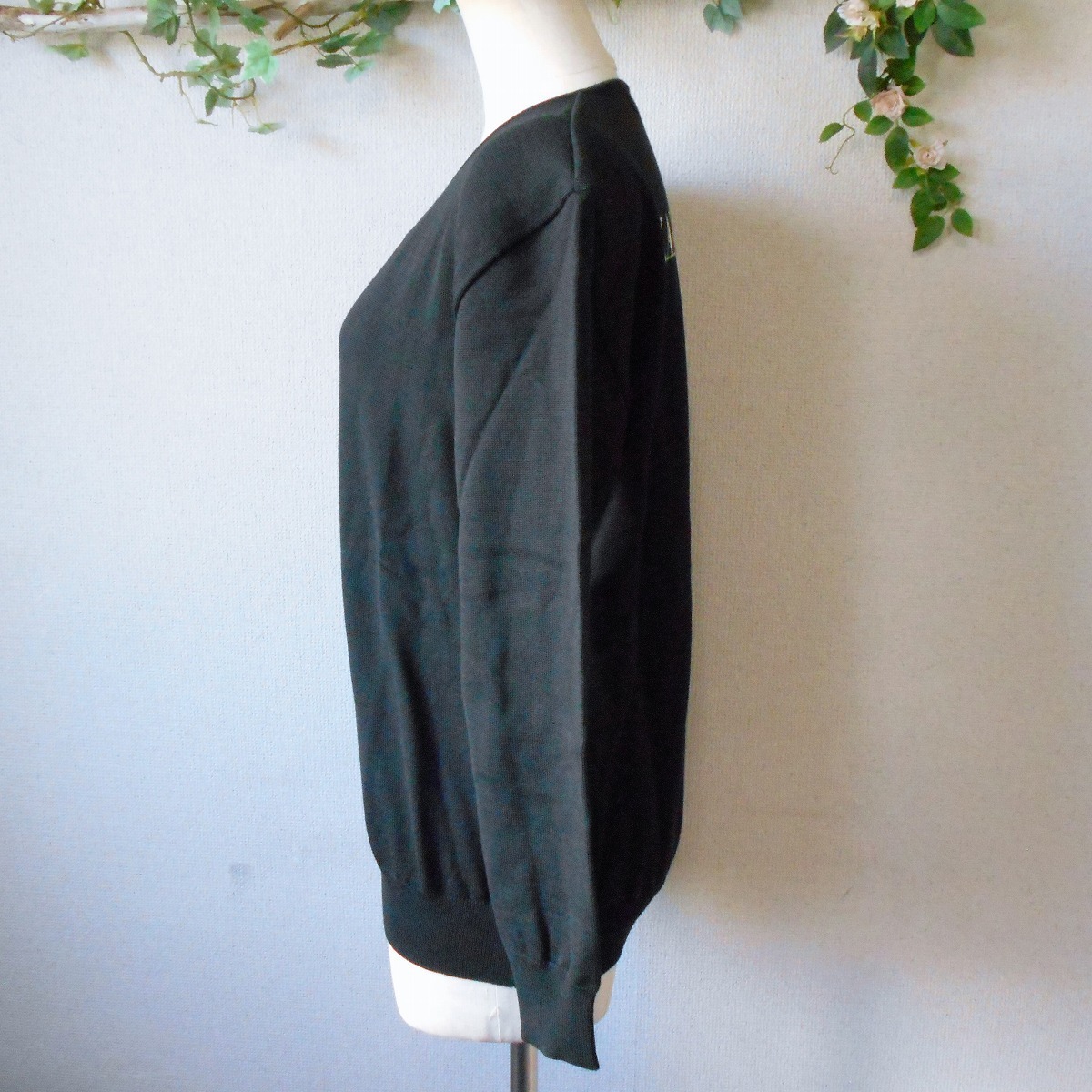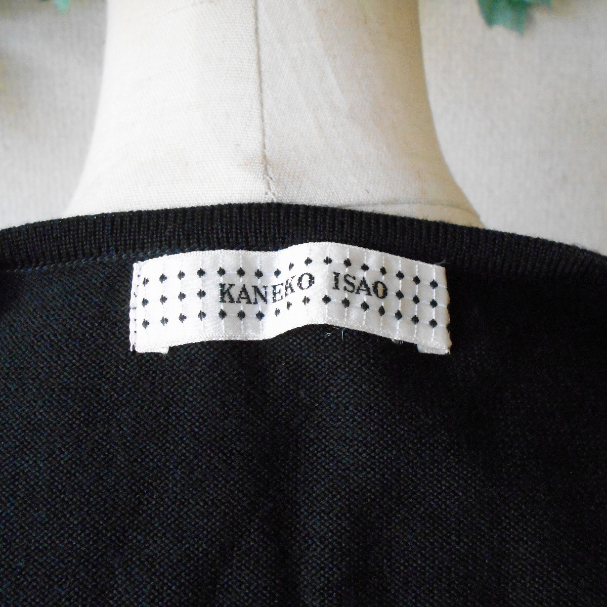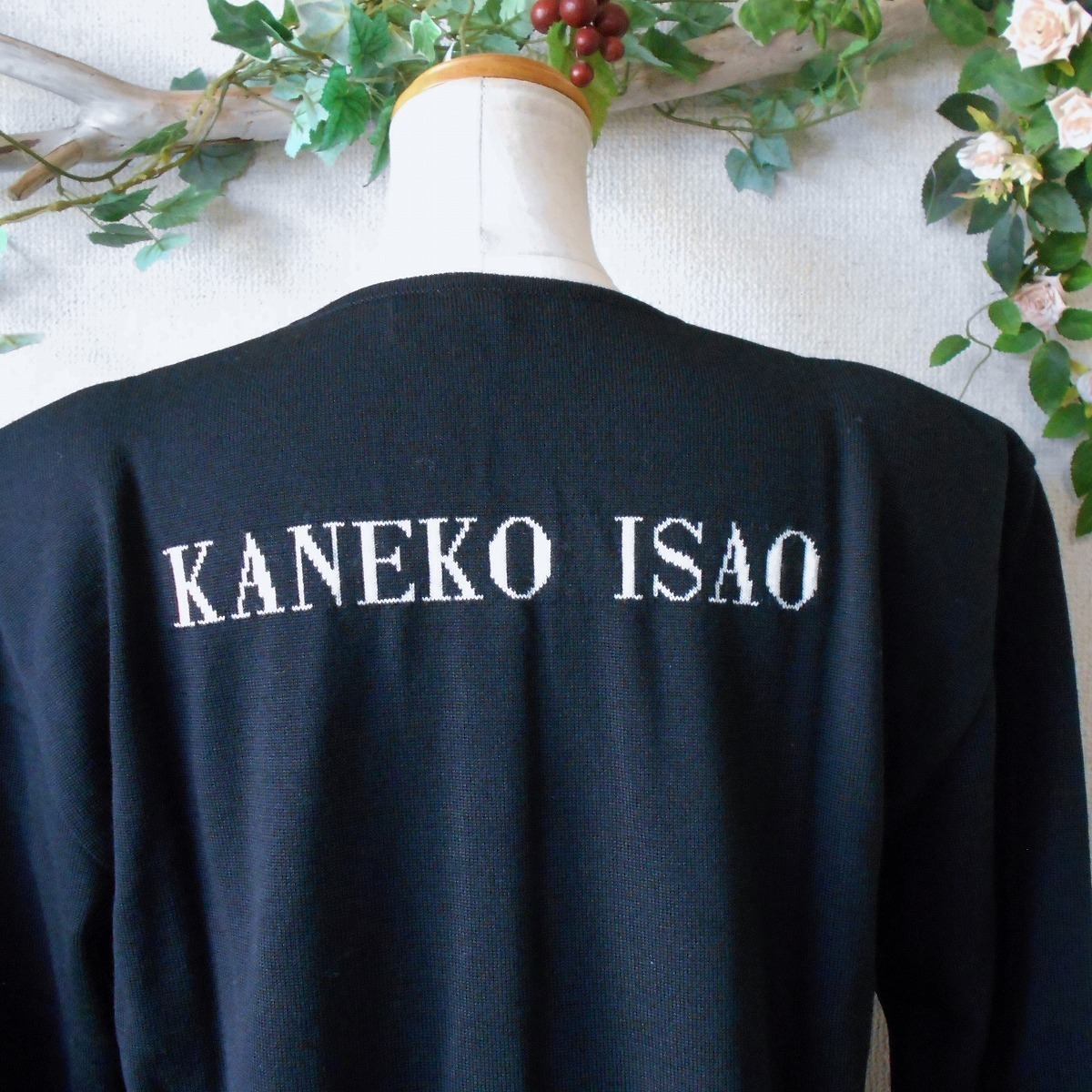 未使用 カネコイサオ KANEKO ISAO ラム ウール 100% 秋冬向き ロゴ 入り ニット カーディガン 黒