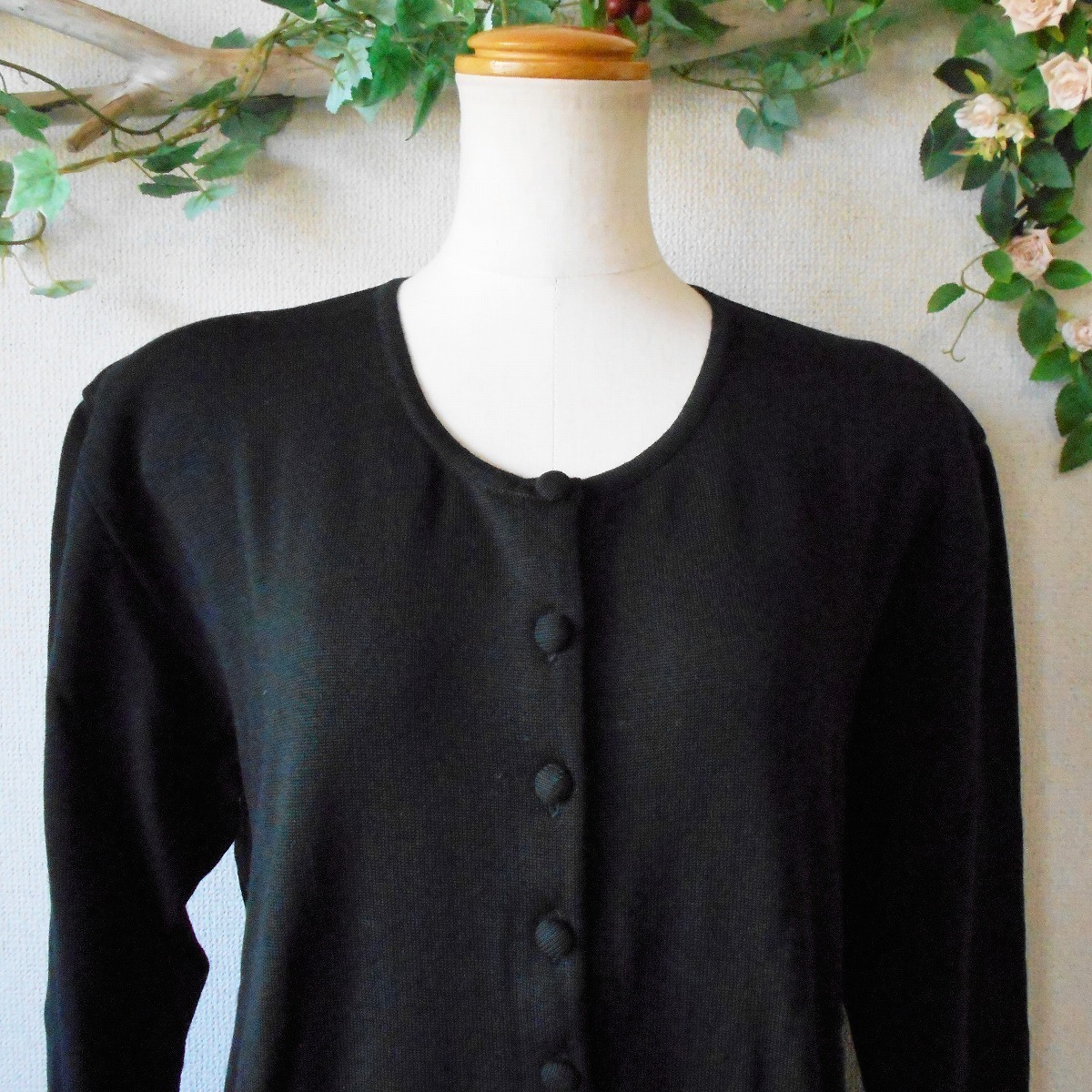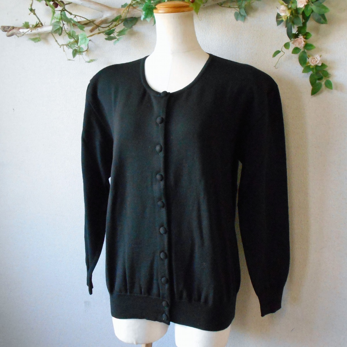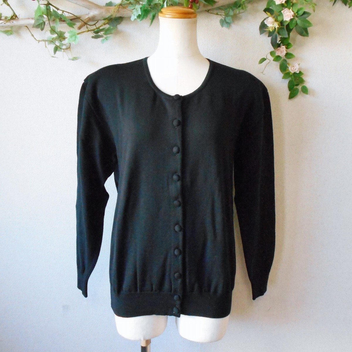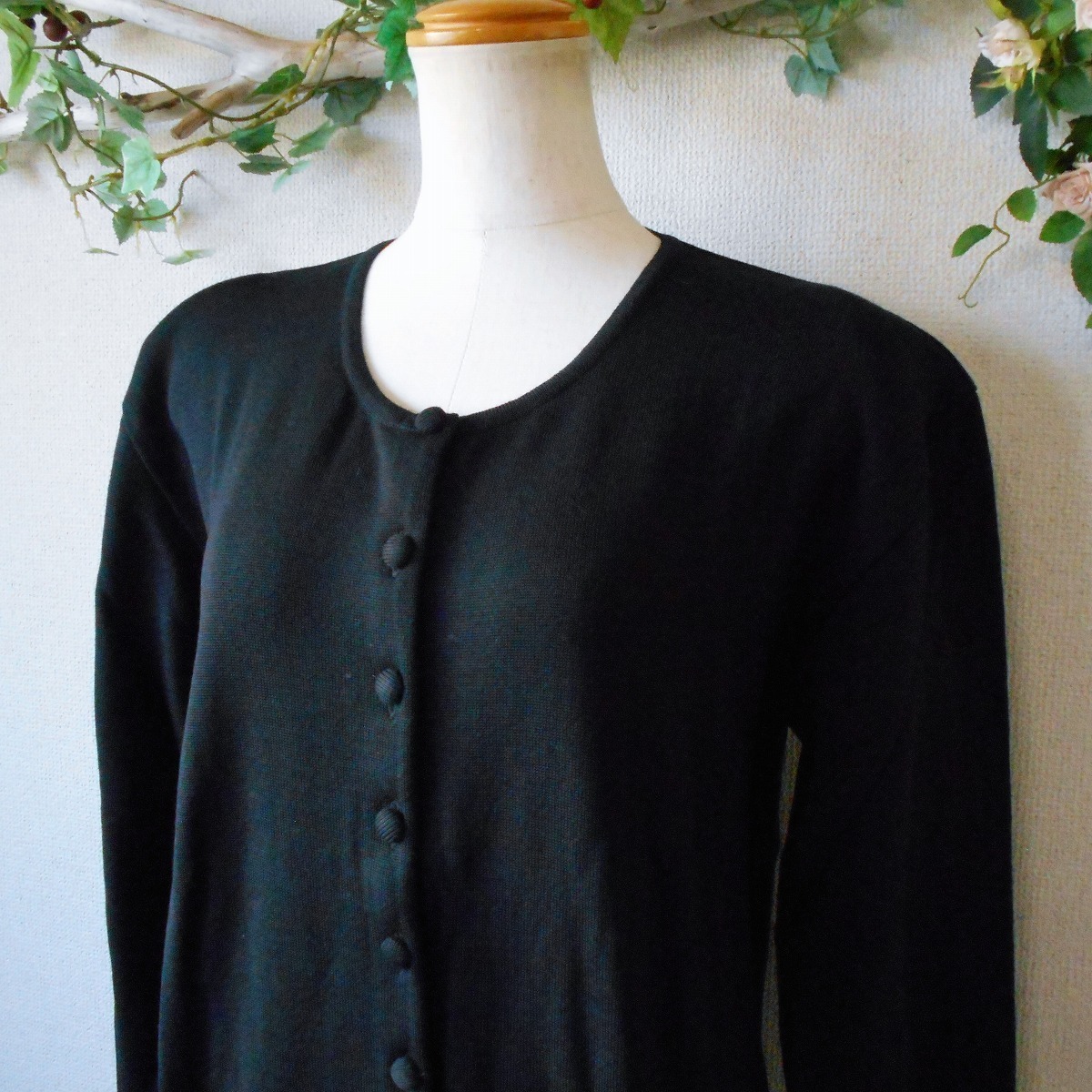 未使用 カネコイサオ KANEKO ISAO ラム ウール 100% 秋冬向き ロゴ 入り ニット カーディガン 黒