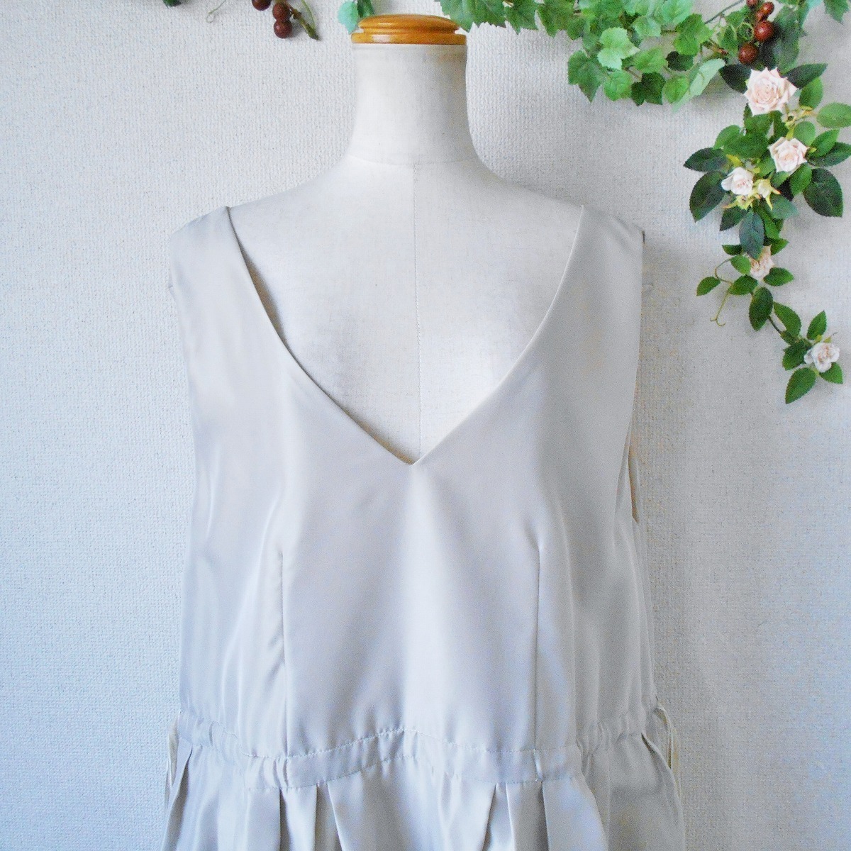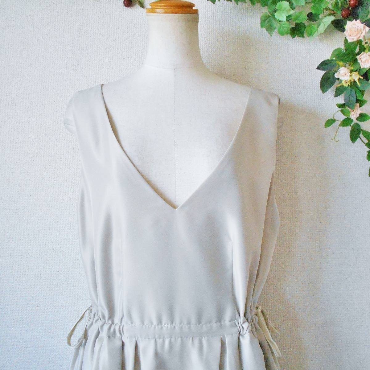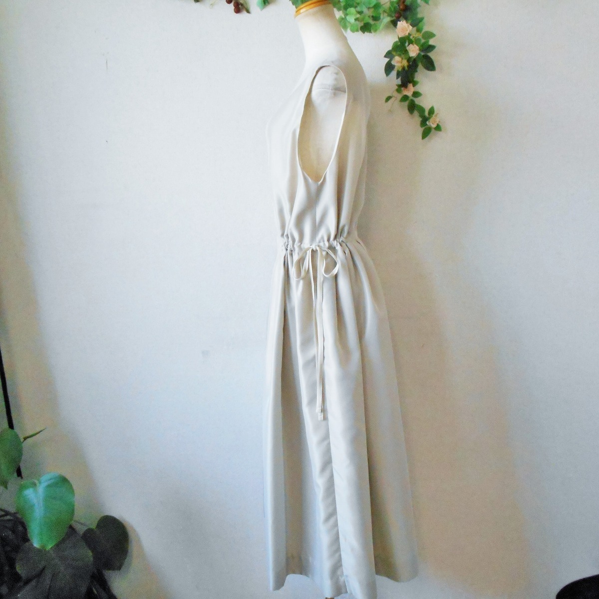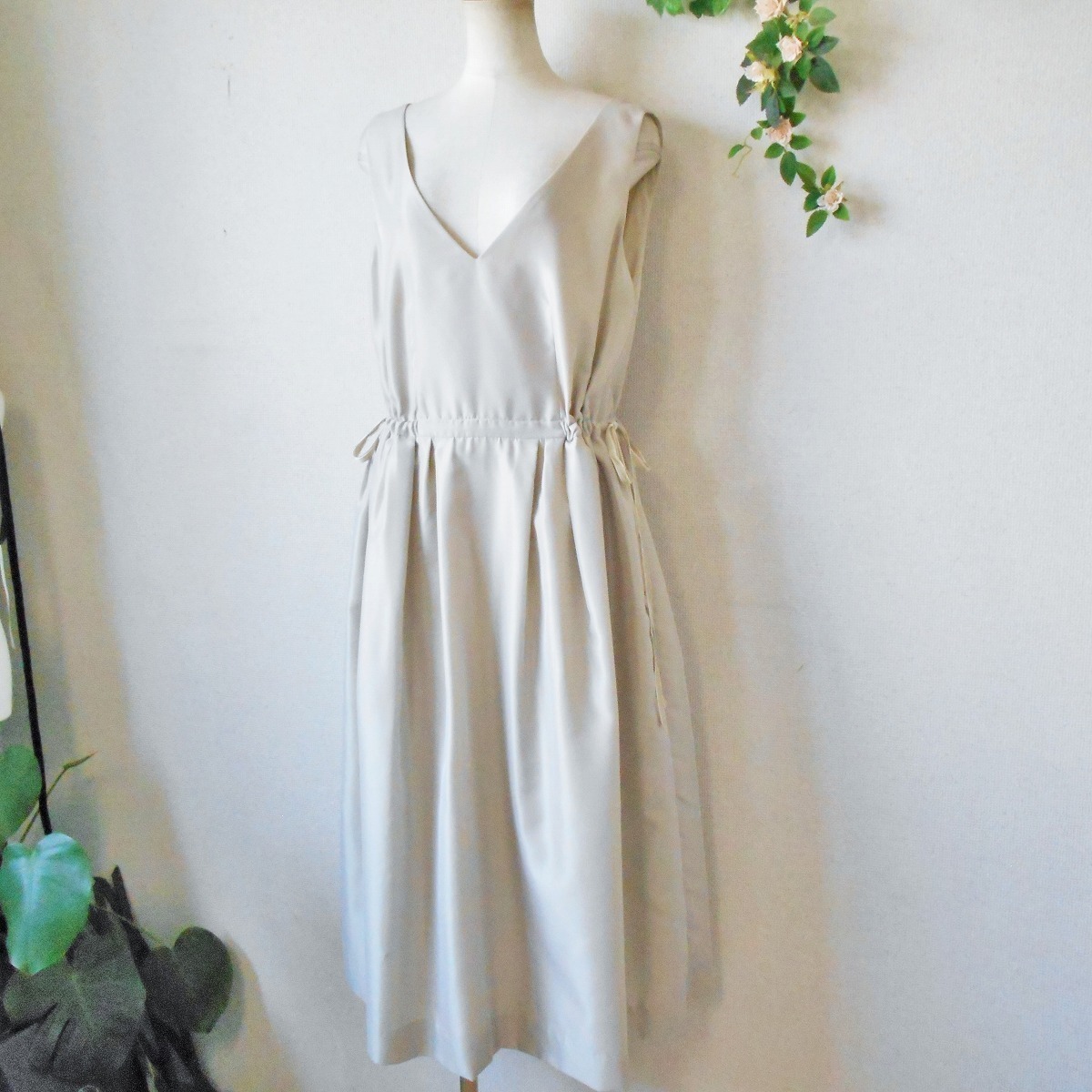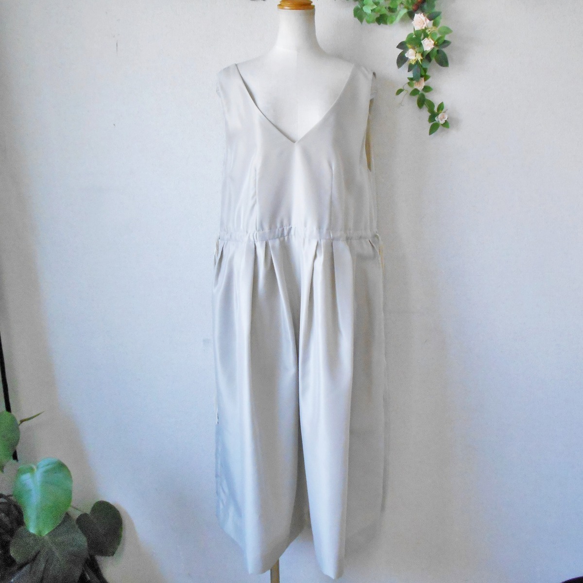 【ポイント】2019年に販売されたインゲボルグのジャンパースカート(ワンピース?)になります。お色は薄いベージュ系で春夏を中心に着ていただけるお品です。ウエストの両サイドに絞れるリボンが付いていて、とっても素敵な一着です。