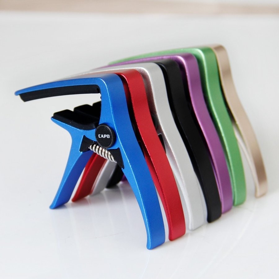 エレキギター・アコースティックギター・フォークギターなど様々なギターに使用出来る、バネ式のカポタストです。