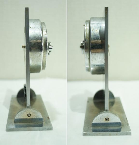素材:金属製。横11.7cm×奥行き5cm×高さ13cm。背面のネジを回すとコチコチ音が鳴り、動きます。時間の誤差は確認していません。