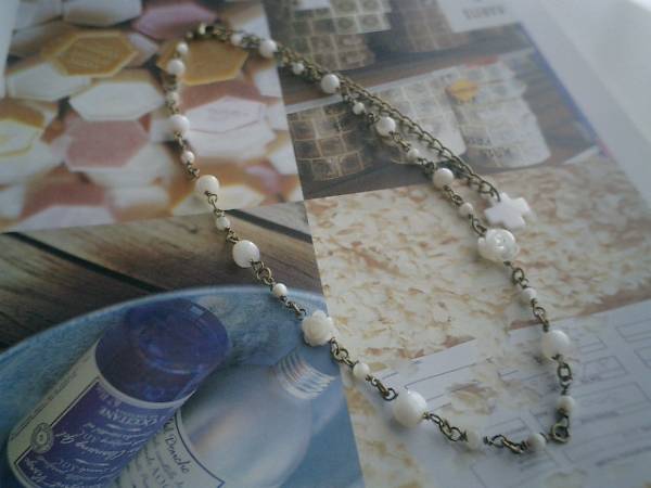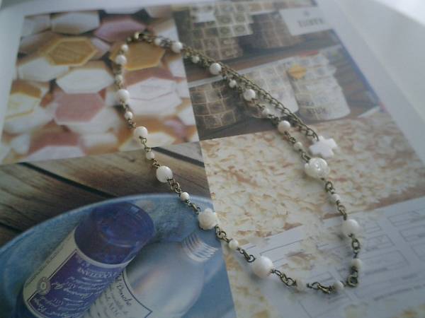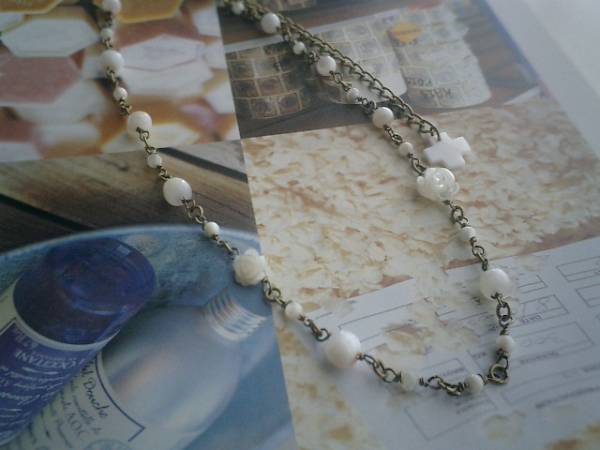愛しいお気に入り・・シリーズです♪初夏の訪れ・・シックなマザーオブパールの薔薇のネックレスです♪♪3ミリと6ミリ位の丸玉、10ミリ、12ミリの大きさ違いの薔薇のマザーオブパールのネックレスはオフホワイトでまとめて可憐な表情です♪長さは全長53センチ位で調節自由です♪♪お揃いのネックレスやブレスレットも出品しています♪シンプルで飽きのこないいつまでも着けられるデザインを考えて作りました!ハンドメイドをご理解頂いてノークレーム、ノーリターンでお願いします