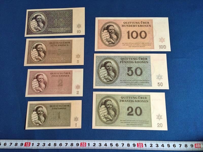 商品はナチスドイツユダヤ人収容所の紙幣7種(レプリカ)です。