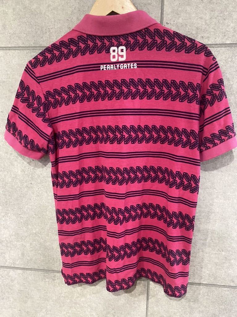 人気! 夏場に! PEARLY GATES パーリーゲイツ 89 半袖 ポロシャツ 総柄 ボーダー ピンク系 4サイズ メンズ ゴルフ ネコポ可 ○ 新規×