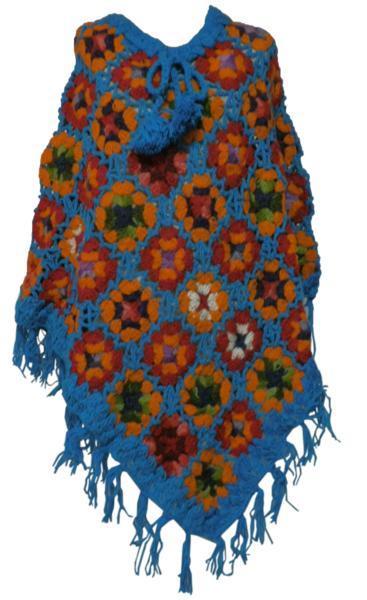 ■☆アジアン衣料 ネパール手編みモチーフポンチョ(NEP-46)