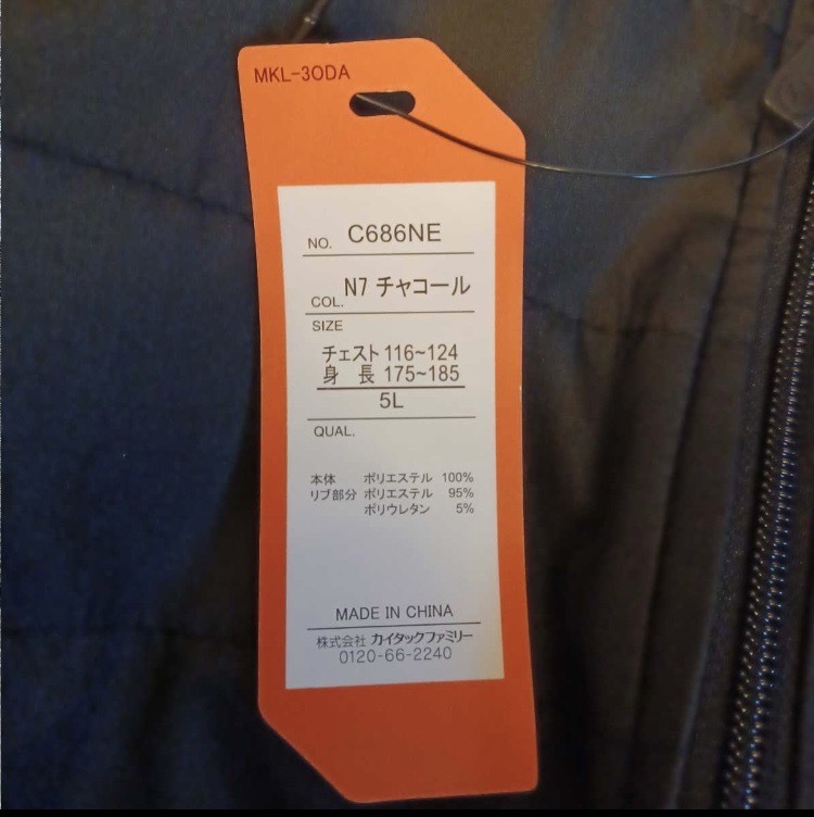 【新品】OUTDOOR アウター JACKET チャコール 5L