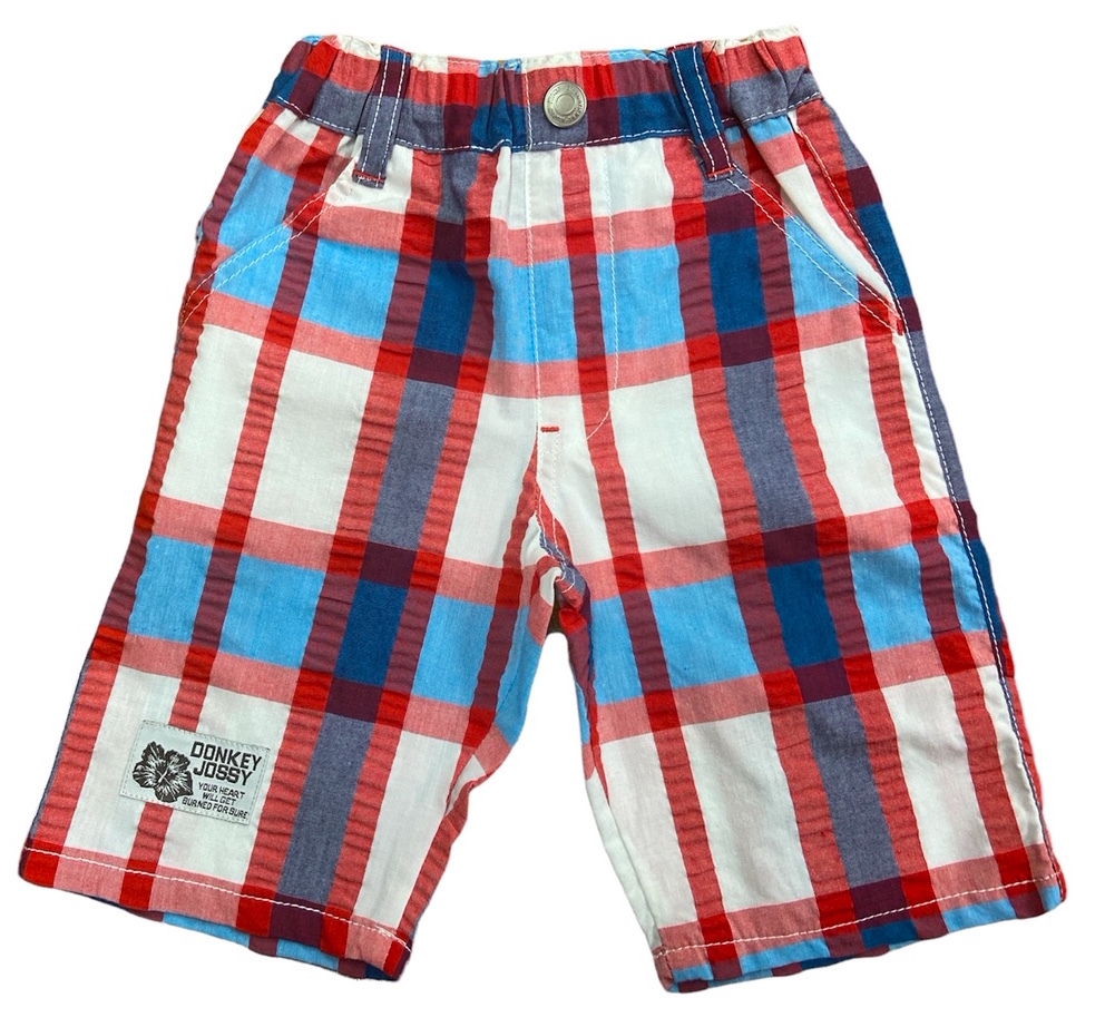 即決 新品タグ付 ドンキージョシー Donkey Jossy★チェック柄 サッカー地★ひざ下 六分丈 ハーフパンツ ★ベビー 90cm 1-2才 ¥2200