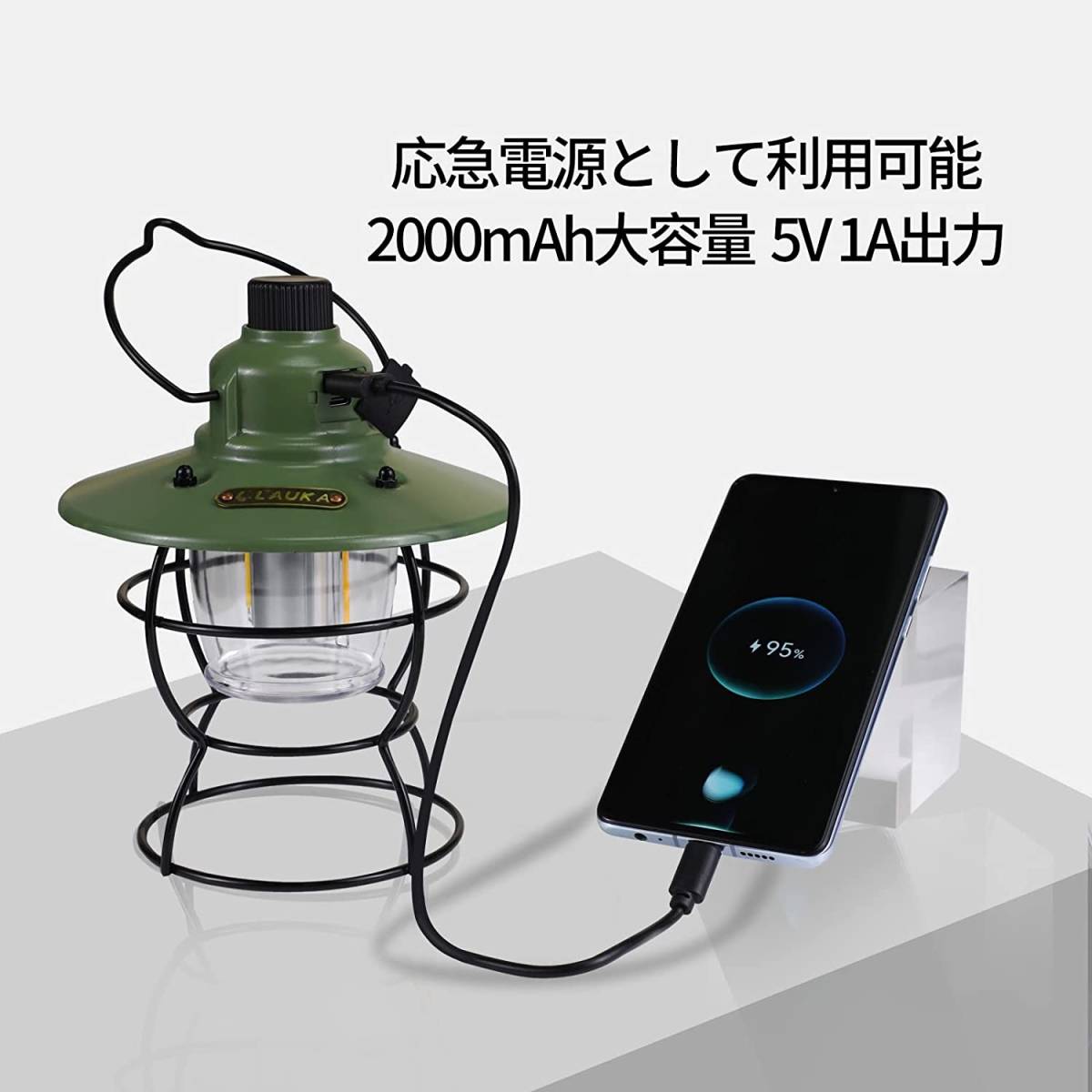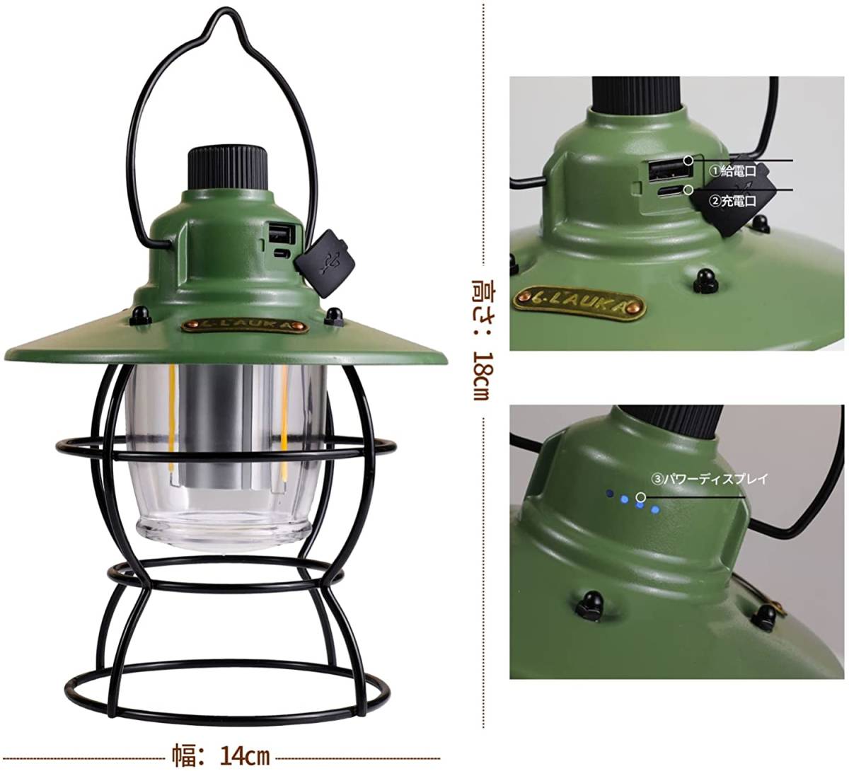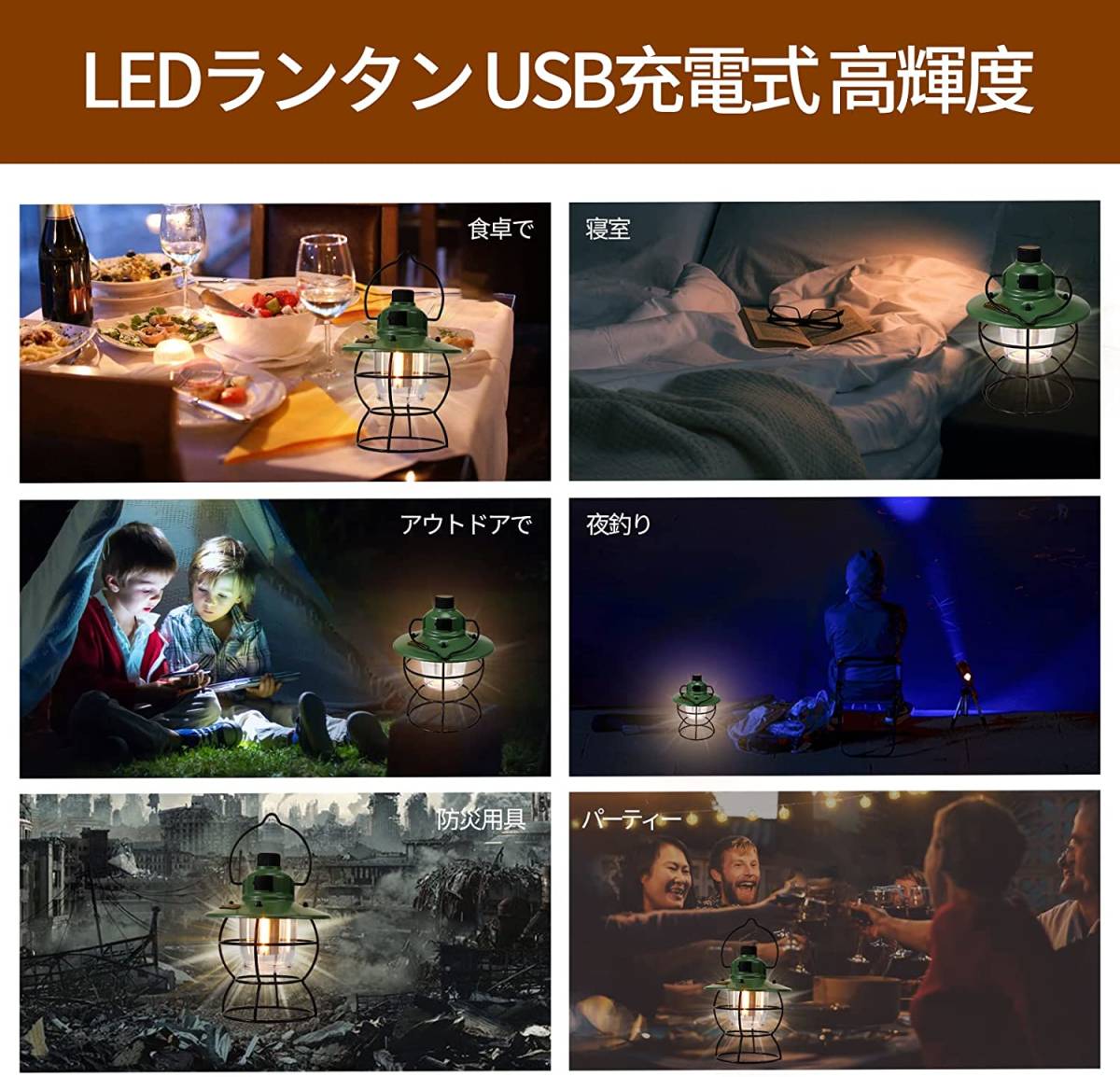 LEDランタン 緑 USB充電式 小型 レイルロード 高輝度 3色切替 無段階調光 キャンプ アウトドア