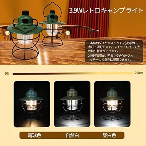 明るさは10~220lmまで、色温度は2200k(電球色)~6500k(昼光色)、睡眠ライトやキャンプランタン、屋内照明などとして使用可能です。