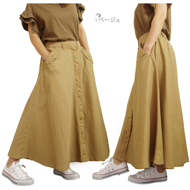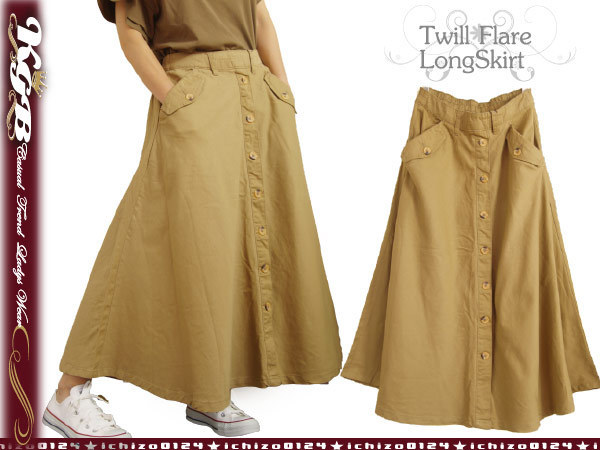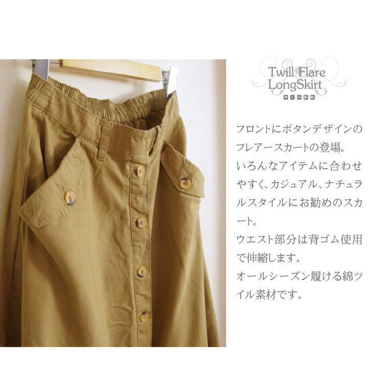 L/ベージュ ロングスカート ツイル フレアー 無地 綿 新品