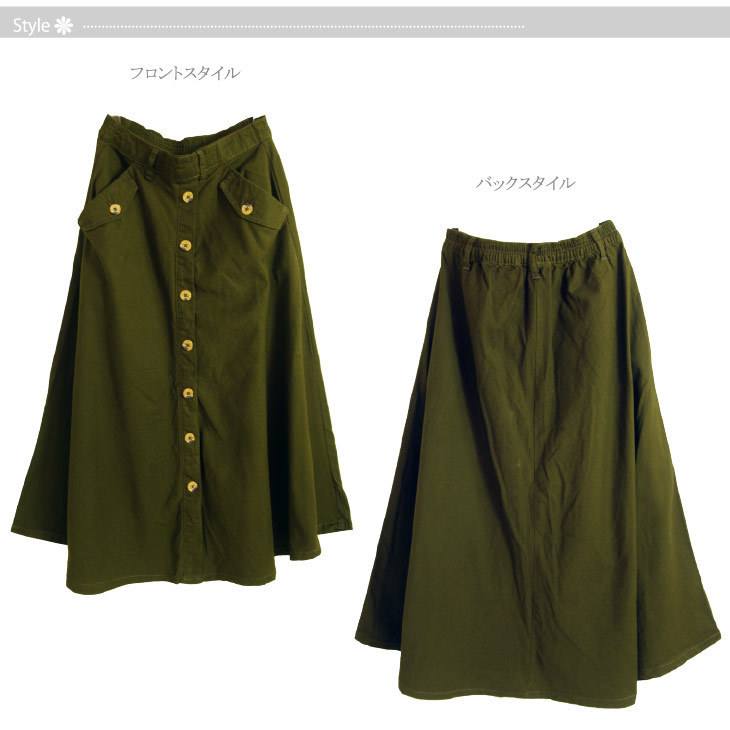 いろんなアイテムに合わせやすく、カジュアル、ナチュラルスタイルにお勧めのスカート。