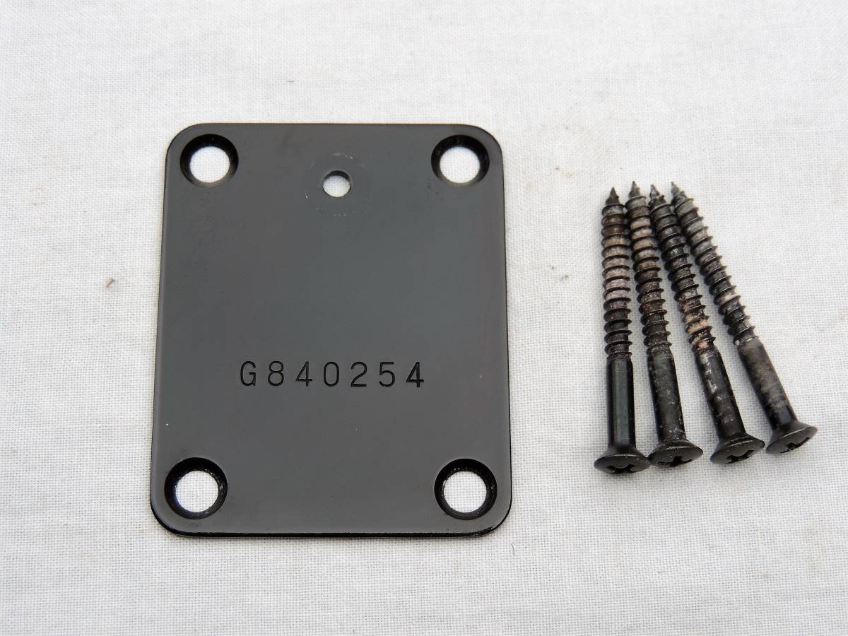 Greco グレコ ネックプレート シリアルナンバー入り ストラップピン取り付け穴有 黒 上物 84年製Greco MTV-85