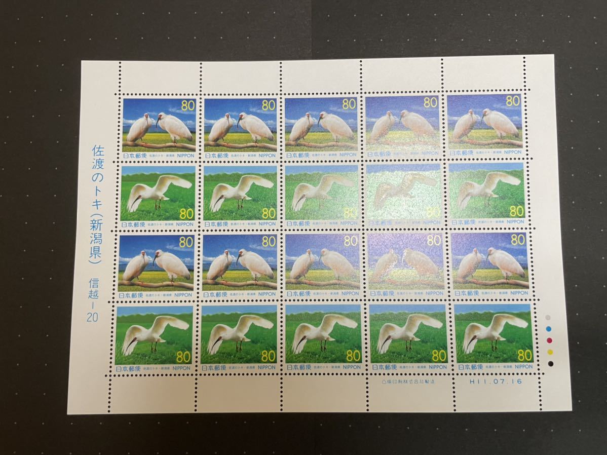 ☆★☆ふるさと切手★佐渡のトキ~新潟県~★信越-20★1999年★80円×20★新品未使用品★送料無料☆★☆
