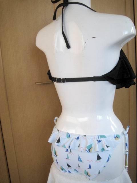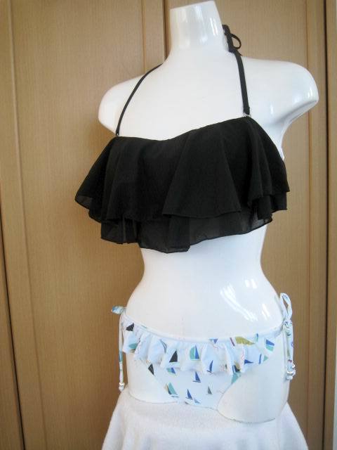 黒のブラにヨット柄ボトムワイヤービキニ水着(11L) 新品