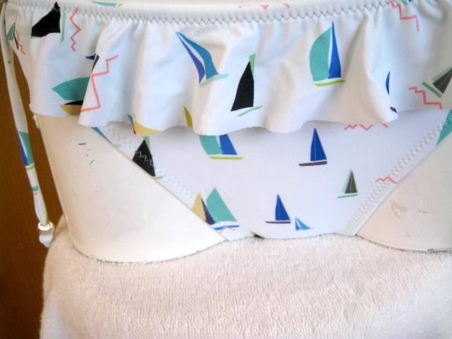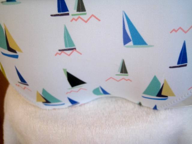 ボトムはみんとグリーン系の色で、ヨットが描かれた生地です。