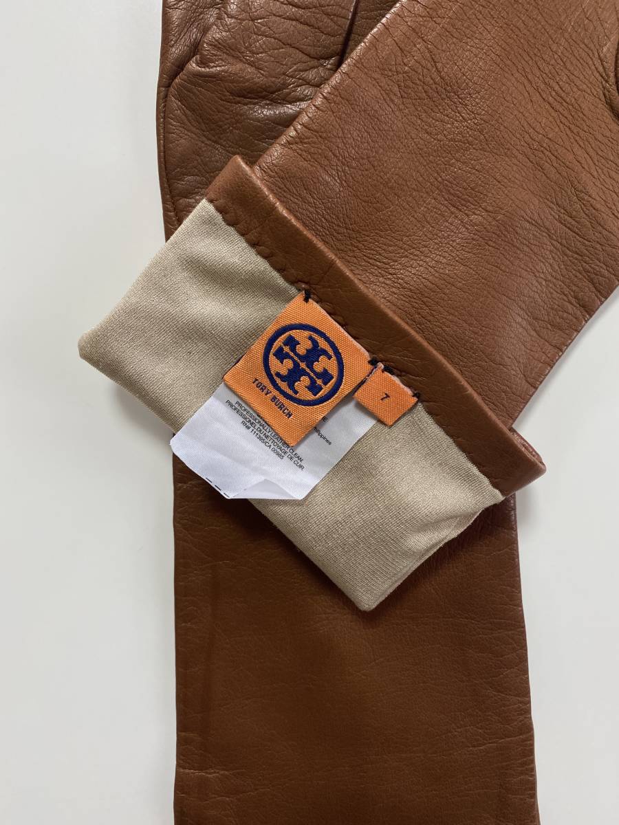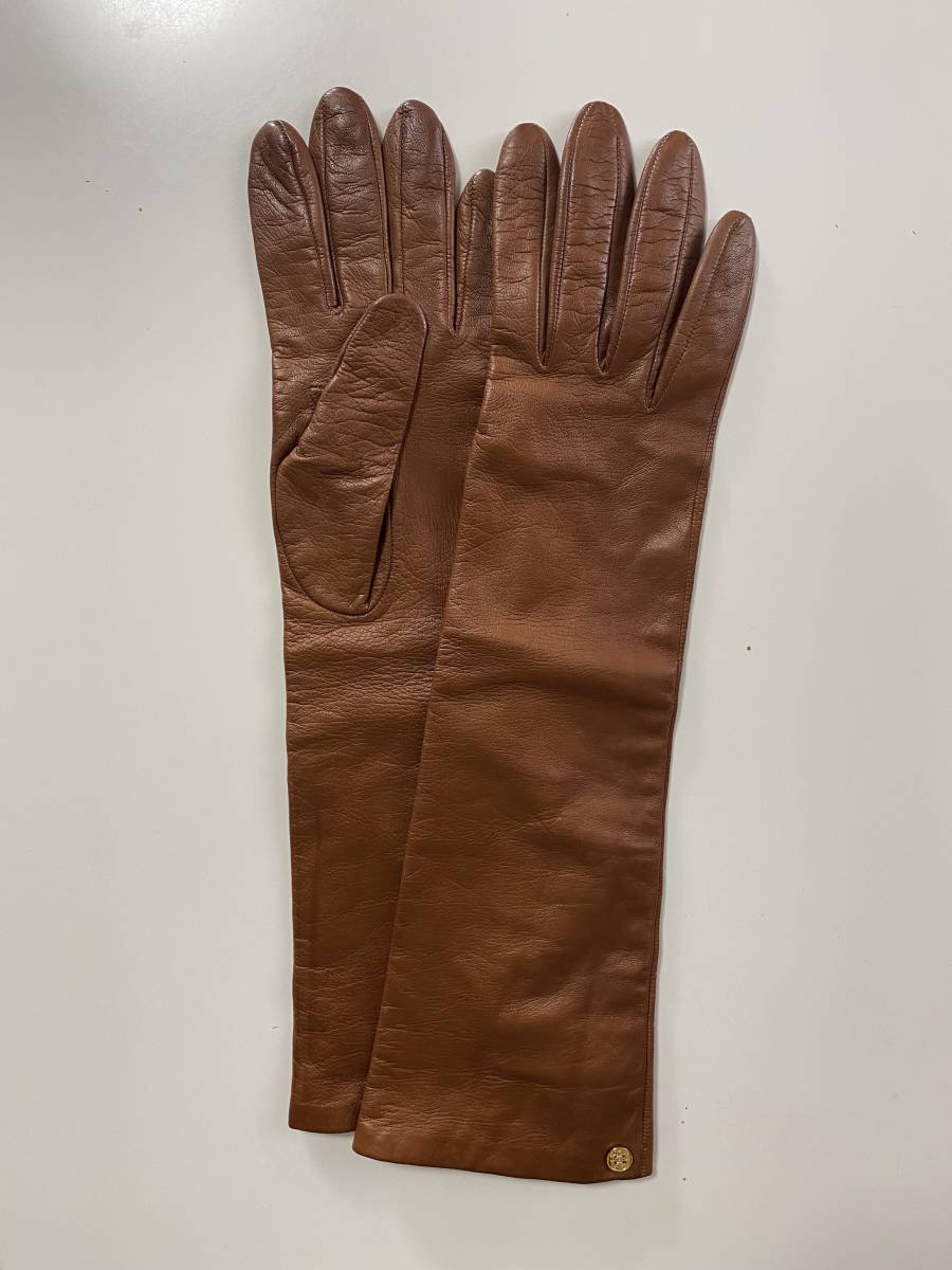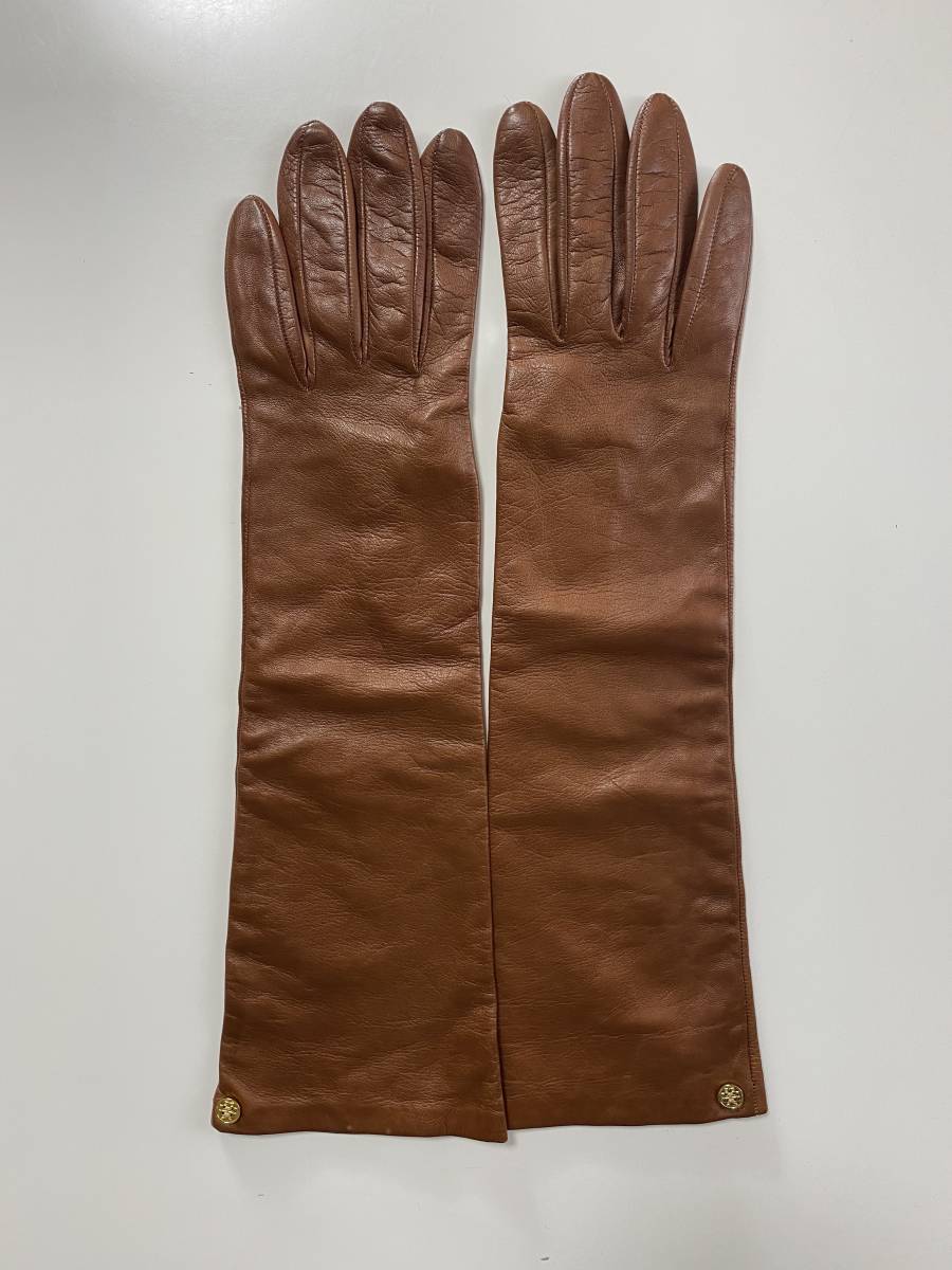 【美品】トリーバーチ レディース ブラウン レザー ロンググローブ 茶色 革手袋 シルク裏地 サイズ7 TORY BURCH