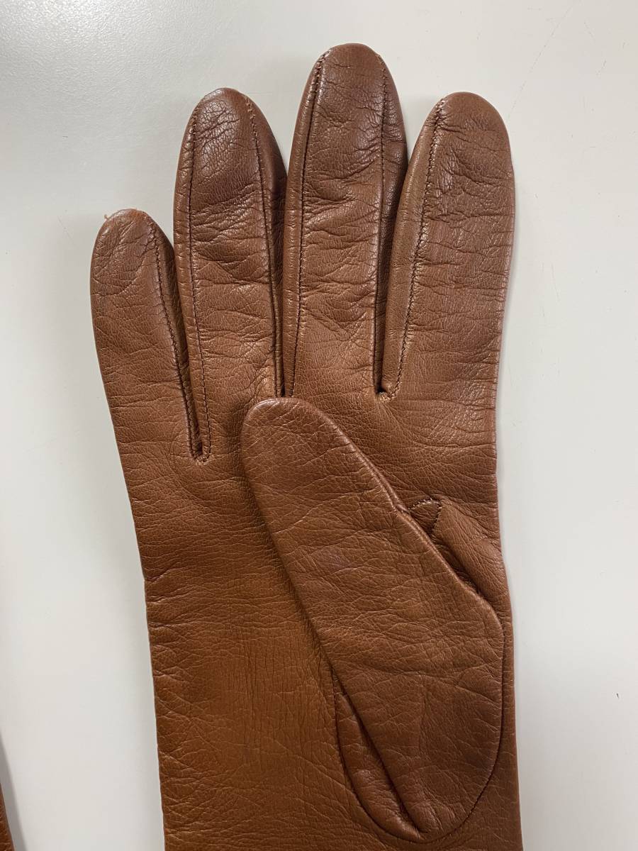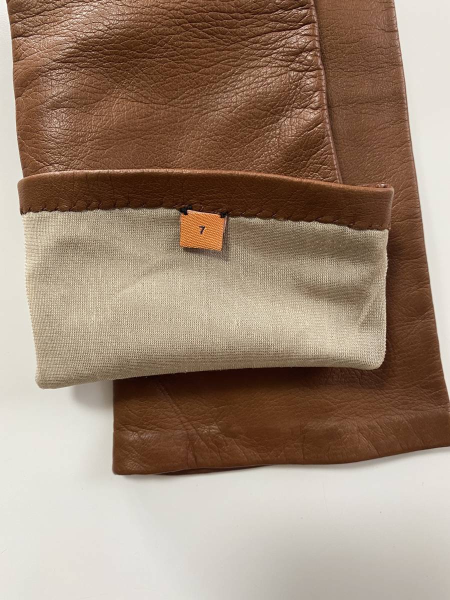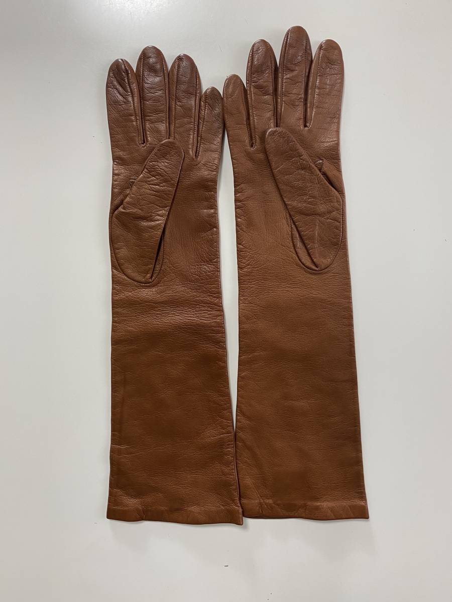 【美品】トリーバーチ レディース ブラウン レザー ロンググローブ 茶色 革手袋 シルク裏地 サイズ7 TORY BURCH
