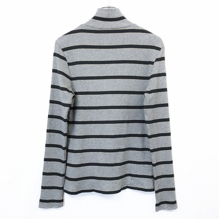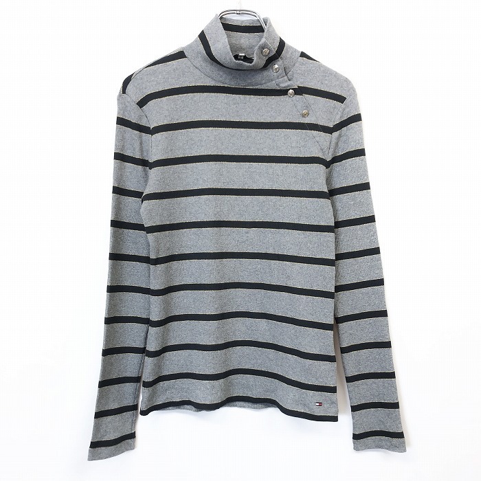 商品タイトル | TOMMY HILFIGER トミーヒルフィガー S レディース リブ カットソー モックネック ボーダー ストレッチ 長袖 杢グレー (ゴールドのラメ糸) |