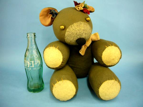 | 商品紹介 | 昭和30年代頃のものではなないかと思われます。 当時の一般家庭での手作り品ではないかと思われます。 手元に偶々あった材料を使ったのでしょうか 金色ボタンの目が効果的な仕上がりとなっています。 中身は触感ですが藁のように思われます。 縫い糸が若干、残っていますので 花飾りは多少、欠品しているかも知れません。 画像でご判断下さる様お願いいたします。 入荷したままの状態です。 ざっと拭きましたがヨゴレがあります。 ご自分で手入れして下さる方にお願いいたします。 (コーラ壜は比較対照の為のものです。) (写真では実際の色が出にくい場合がありますがご了解下さい。) 全体的に所々ムシクイ穴があります。 大きなものとして(写真3枚目○印参照) 中古品ですので経年の色褪せ、ヨゴレ、小キズ、ホコロビ 糸のホツレ、小ヤブレ、ムシクイ、色落ちなどがあります。 他にも難があるかも知れません。 その場合はご容赦下さい。 他に大きなダメージはないと思われますが 見落とし、書き落としもあろうかと思いますので 状態、欠品などは画像にてご判断下さい。 写真のものが全てです。 写真でご判断下さる様お願い申し上げます。 落札時に出品者からのメッセージが届きますのでご覧下さい。 (マイオークションの通知設定を非通知にしている場合は届きません) メールが届かない場合はお手数ですがご連絡下さい。 落札後のキャンセルはお受けできません。 |