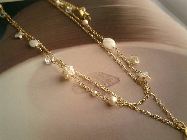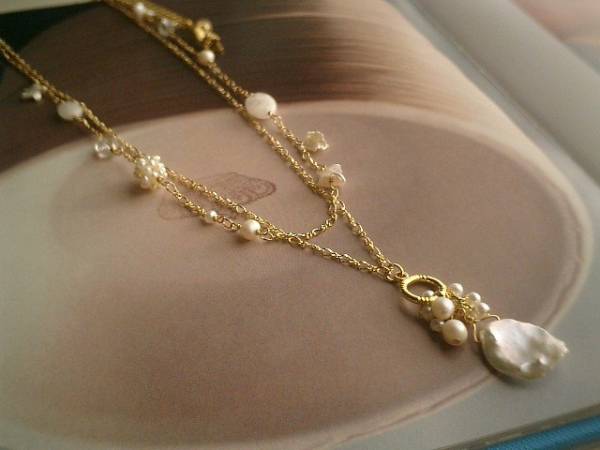 ジゼルの季節・・シリーズです♪繊細な芥子パールのネックレス2本セットです♪芥子パールや水晶を合わせたネックレスと大きな芥子パールのネックレスの2本です♪6ミリから10ミリ位までの大きさ違いの芥子パールは4ミリ、6ミリのポテトの淡水パールや10ミリの淡水パール玉、6ミリのランダムカット、8ミリのハート、10×8ミリのオーバルカットなどデザイン違いの水晶や8ミリ、10ミリのコイン、15×10ミリ、10×8ミリのオーバルなどデザイン違いのムーンストーンなど可憐な石を集めてロマンチックな表情です♪長さは全長72センチ位で調節自由です♪チョーカー風にされてもブレスにされても素敵です♪20×17ミリ位の芥子パールのトップには4ミリ、6ミリのポテトの淡水パールやデザインリングを合わせてアンティークモダンしています♪♪長さは全長93センチ位で調節自由です♪それぞれ単品でも出品しています♪お揃いのネックレス3本セットやブレスレットやピアスも出品しています♪シンプルで長く着けていただけるデザインを考えて作りました♪♪ハンドメイドをご理解頂いてノークレーム、ノーリターンでお願いします。
