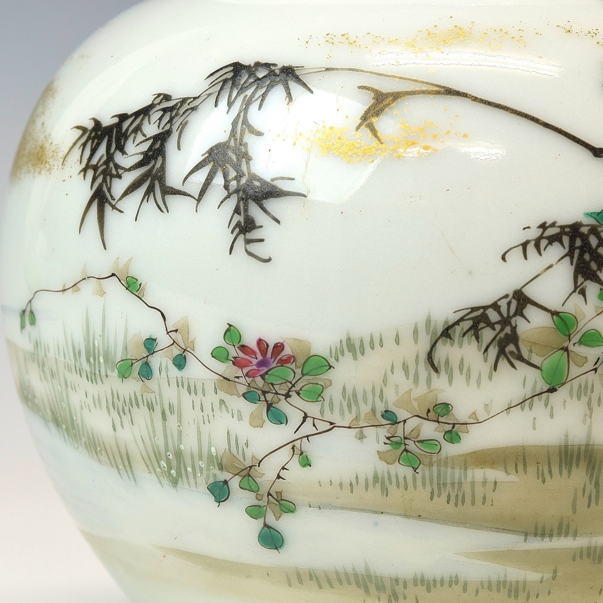 | 商品名 | 【趣楽】 時代 草花虫籠図茶壺 高さ12cm 日本愛知藤嶌銘 C1641 | ||