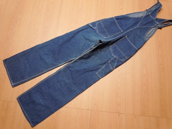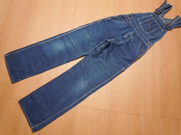 ●ブルーウェイ、古いオーバーオールです。あくまでも古着のため、ノークレームノーリターンでお願いいたします。使用感は、ございます。フロントはボタンフライです。いい感じに縦落ちした色落ちが、雰囲気抜群です。 裾はオリジナルのチェーンステッチです。裾に、細かな擦れがございます。