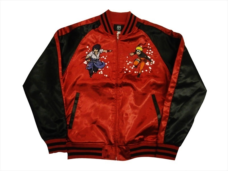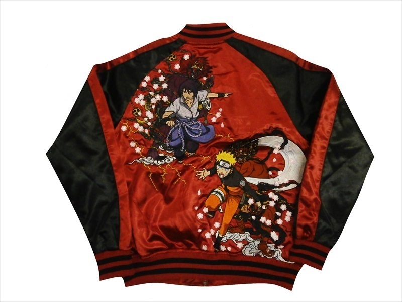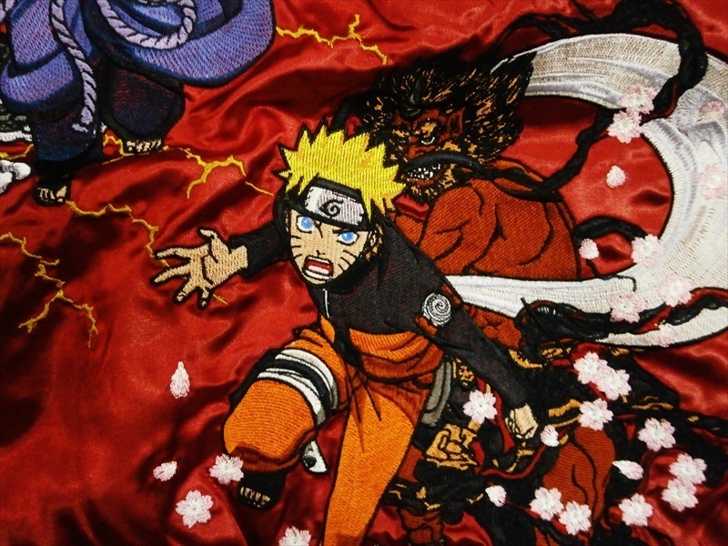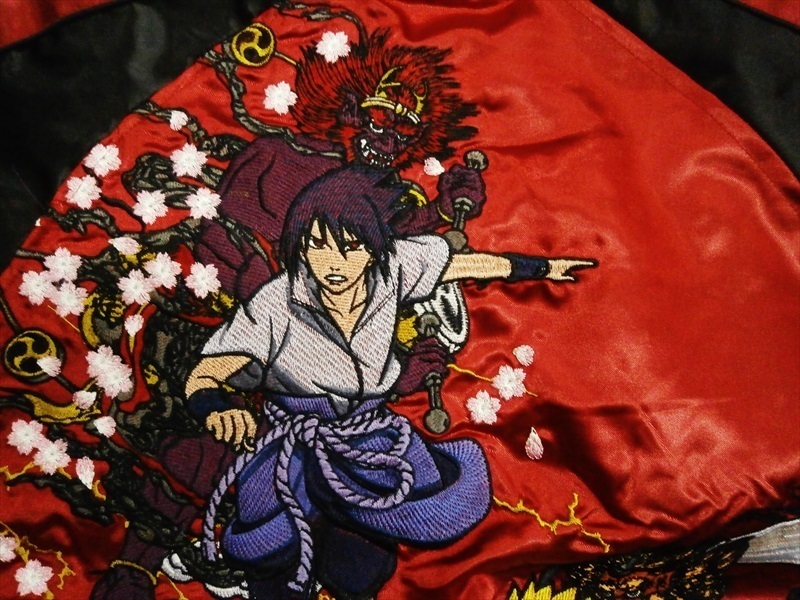 | 【商品名】 | ナルト×朧(おぼろ) コラボ サテン スカジャン 華鳥風月 9001823 総刺繍『NARUTO/風神・サスケ/雷神』 和柄 刺繍 前あき スカジャン |
