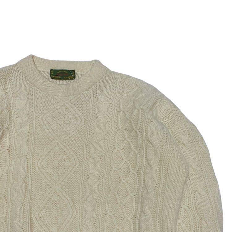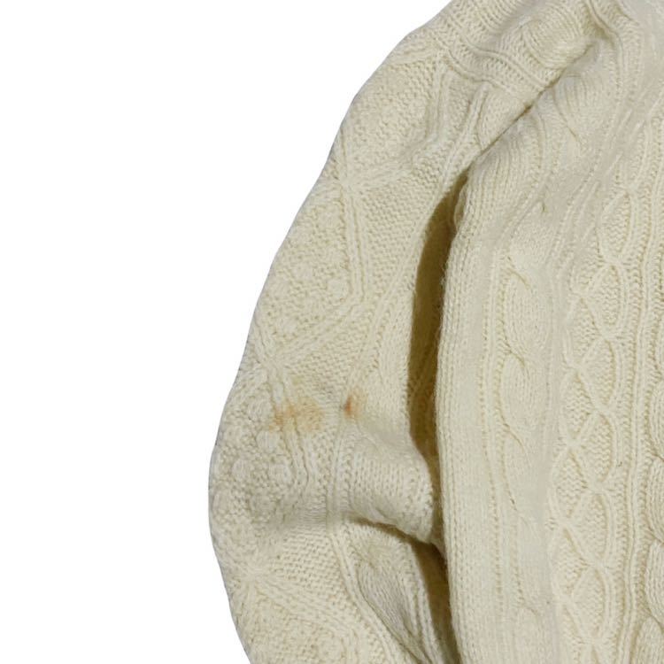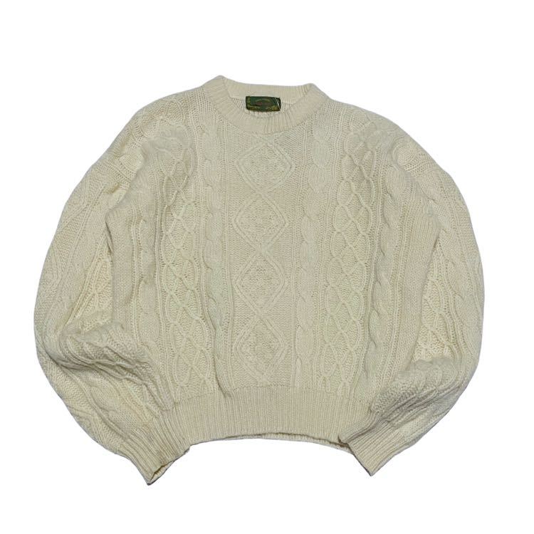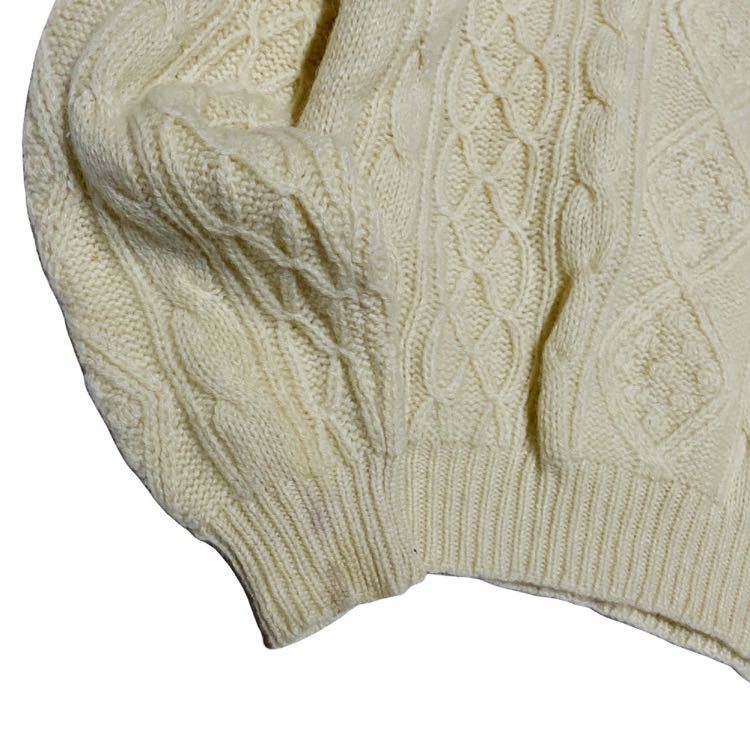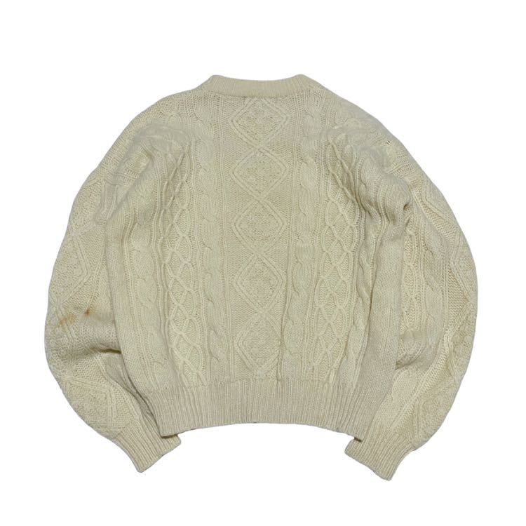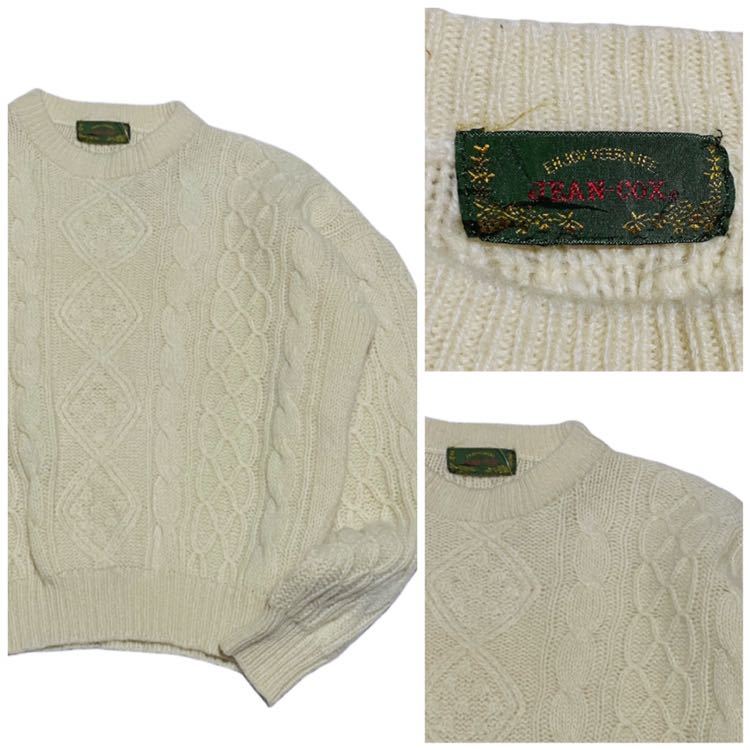 90’s JEAN COX ヴィンテージ フィッシャーマン セーター アラン ニット ケーブルニット M相当 ナチュラル ウール ケーブル ハンドニット