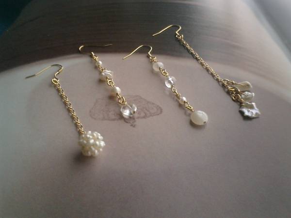 ジゼルの季節・・シリーズです♪繊細な芥子パールのピアス4本セットです♪デザイン違いの4本セットです♪色々な組み合わせで楽しんでいただけます♪それぞれお揃いでもお作り出来ます♪♪6ミリから8ミリ位までの大きさ違いの芥子パールや4ミリ、6ミリのポテトの淡水パールや10ミリの淡水パール玉、6ミリのランダムカット、8ミリのハートなどデザイン違いの水晶や8ミリ、6ミリのコインのムーンストーンなど可憐な石を集めてロマンチックな表情です♪長さは左から7.5センチ、7センチ、7.5センチ、9センチ位です♪イヤリングにも変更出来ます♪お揃いのネックレス3本セットやブレスレットも出品しています♪シンプルで長く着けていただけるデザインを考えて作りました♪♪ハンドメイドをご理解頂いてノークレーム、ノーリターンでお願いします。