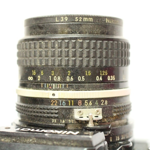 素材:金属・他。NIKKOR 35mm 1:2.8 392154 シャッター下ります。レンズ内に若干のカビがあります。全体に汚れがあります。