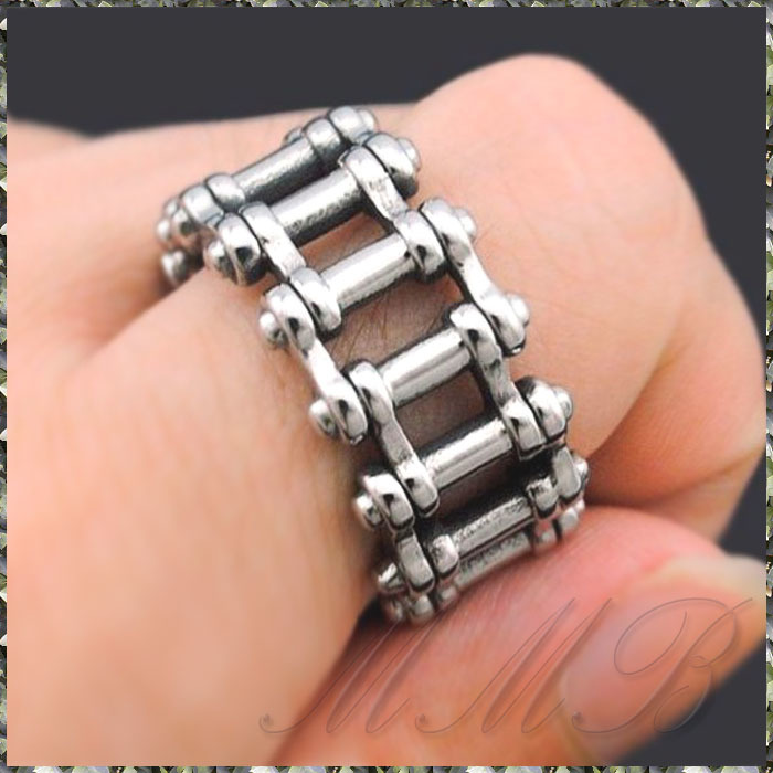 [RING] 316L Stainless Steel Vintage Motorcycle Bicycle Chain ヴィンテージ バイク チェーン デザイン 12mm リング 21号 【送料無料】