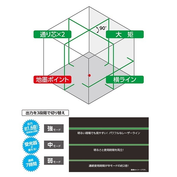 ●視覚的に見やすい緑色のレーザーを採用しています。