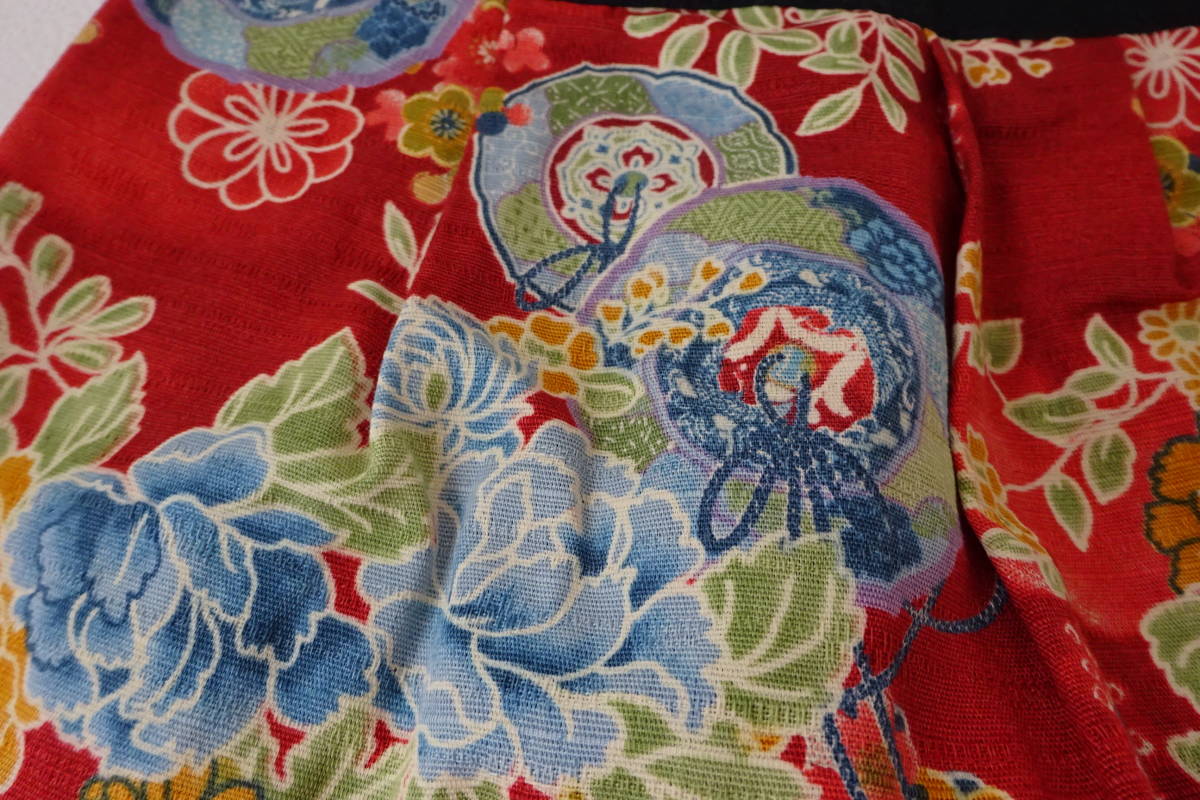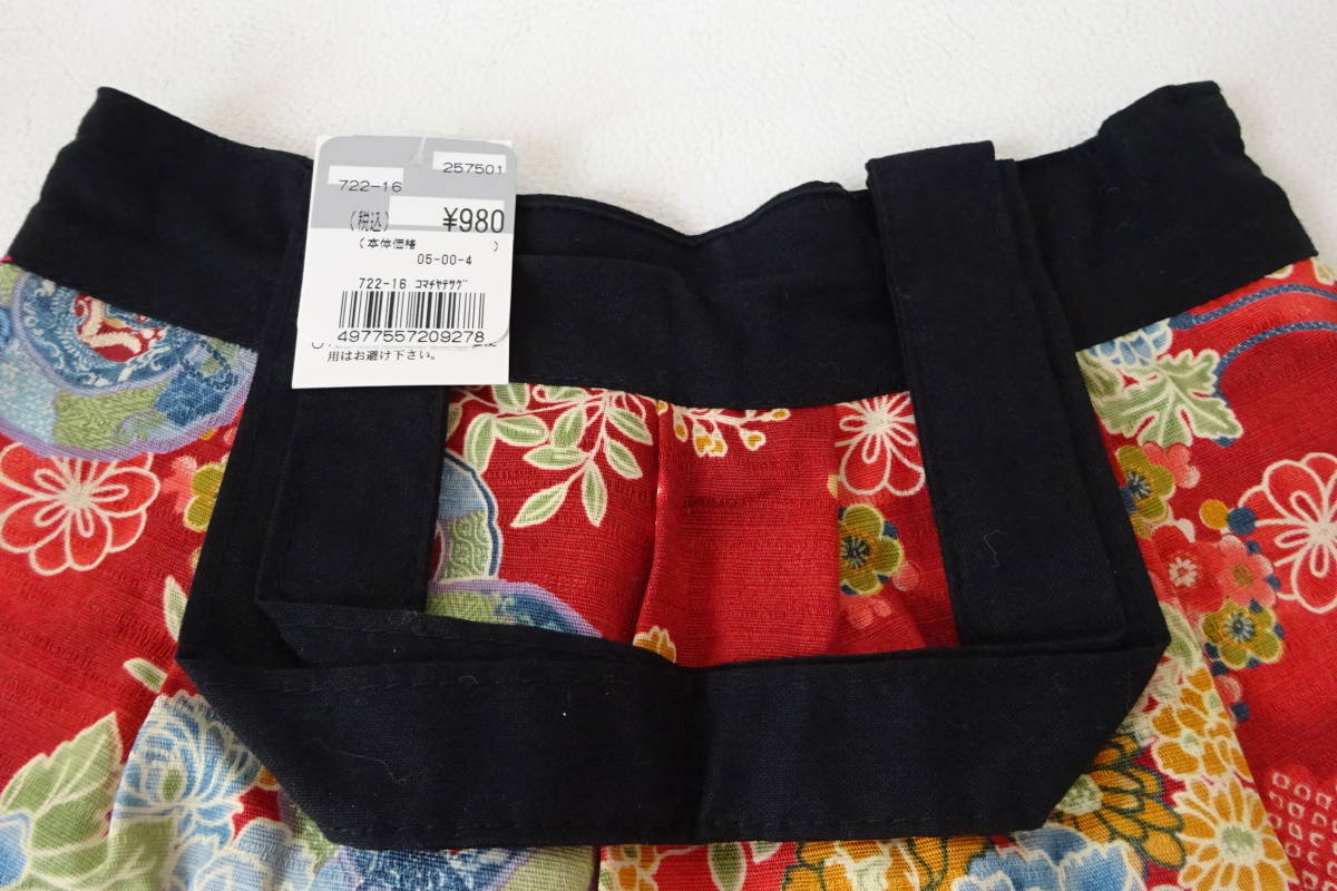 和風 和柄 着物柄【牡丹 梅 鼓 小菊 梅☆可愛い手提げバッグ&保険証カードケース】赤系和柄☆計2点セット☆未使用・タグ付き・自宅保管品