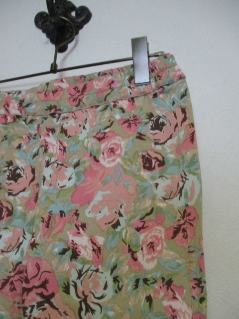 | 商品紹介 | ピンクを基調とした花柄がオシャレなスリムパンツです。 地色は薄いくすんだカーキです。 細身ですが、ストレッチが効いていてはきやすいです。 《素材》 綿98% ポリウレタン2% |