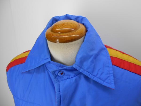 | ★Size M 170cm前後 (表記 M) 肩幅 45cm, 身幅 56cm ,着丈 67cm 重さ320g ★Goods USA古着 70s頃 ベスト 中に薄く中綿が入っています。 軽くて、着やすそうです 可愛いカラーです 写真モデル〔170cm 63kg) ちょうどで、良い感じです 使用感 多少のホツレ ボタン塗料に剥げ 古着の御好きな方でしたら、普通に着て頂ける程度です ★Material ナイロン ★color 青 ★Made in 香港 | ||
