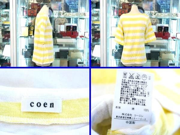 ■商品名○美品 コーエン coen ボートネック ボーダー カットソー Mサイズ F1848 220107