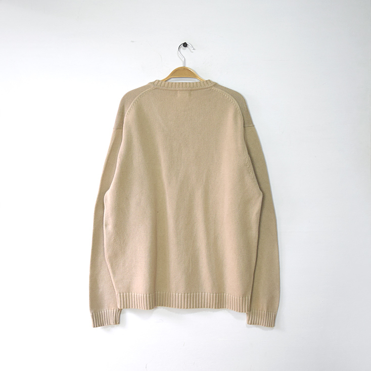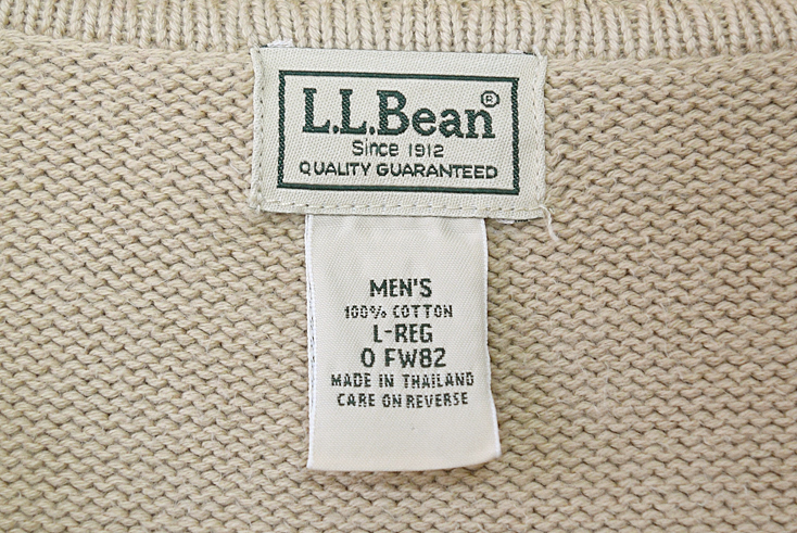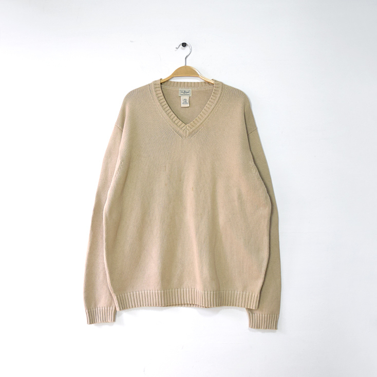 【送料無料】L.L.Bean コットンニット Vネック セーター メンズL LLビーン エルエルビーン ベージュ アウトドア 古着 CH0860