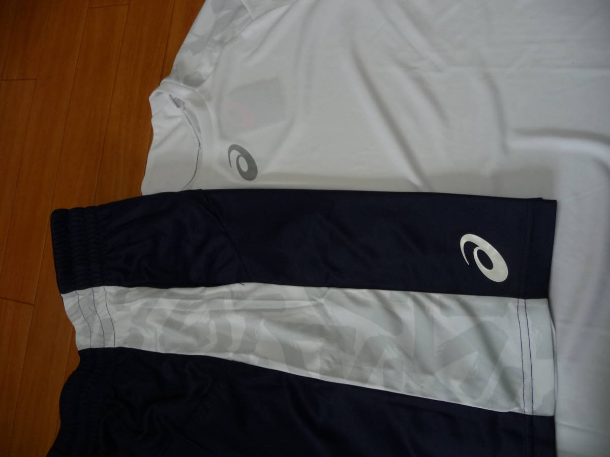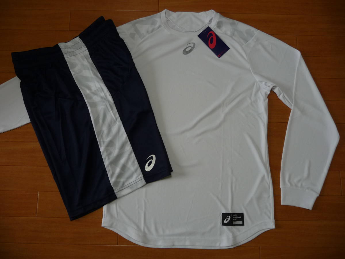 52%off-新品★アシックス 長袖シャツ・ハーフパンツ上下★XL/白・紺 迷彩